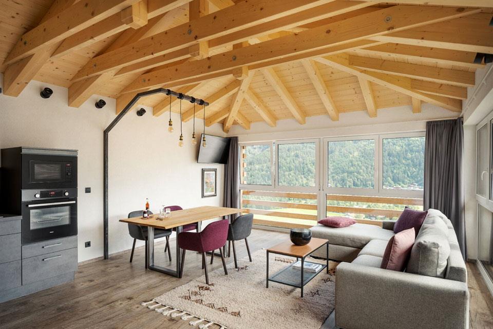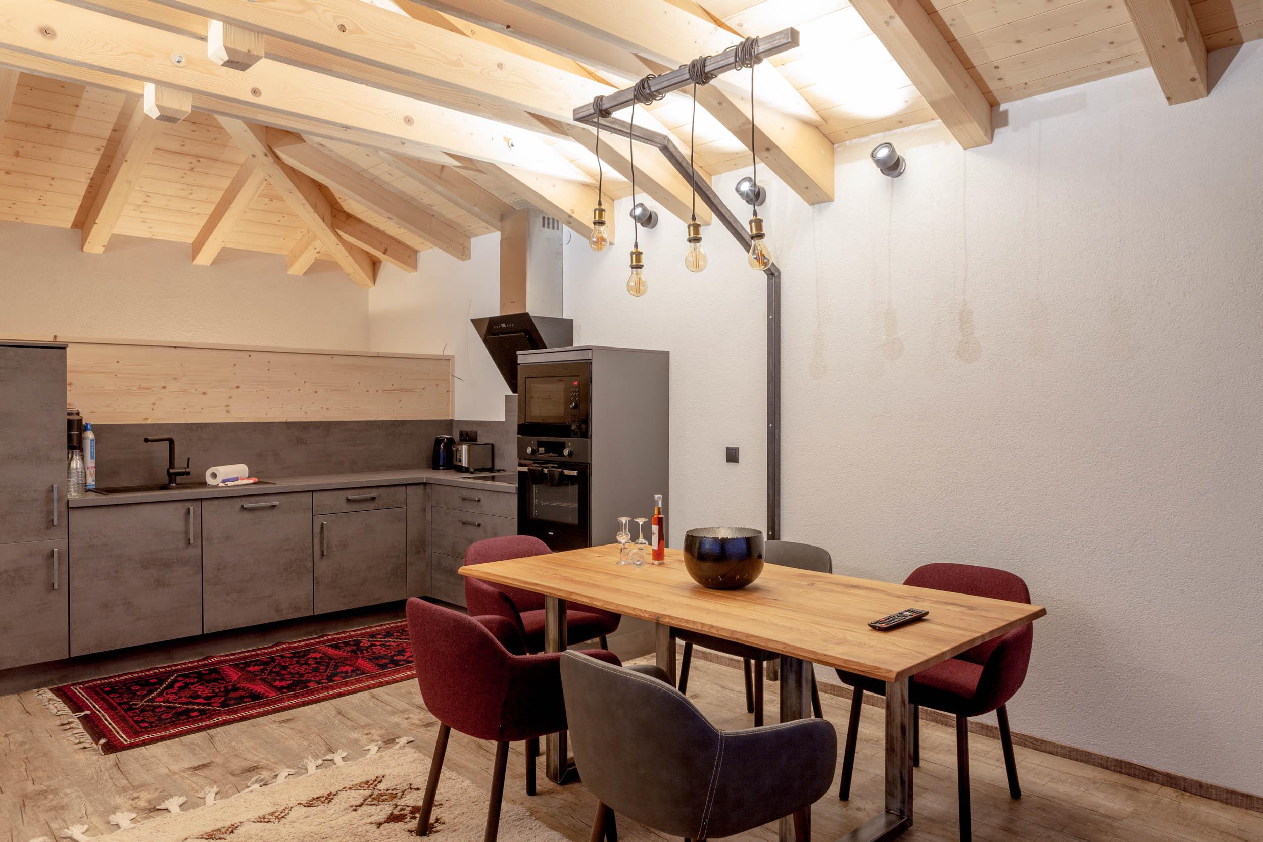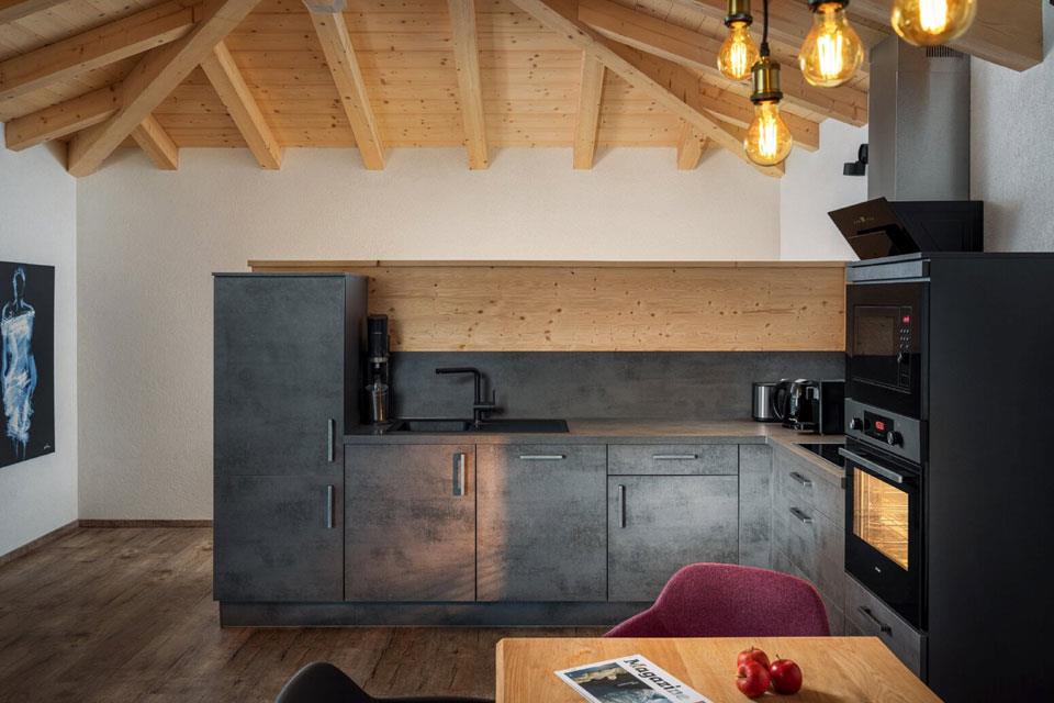 Die Gipfel scheinen zum Greifen nah: Das Appartement Kogelblick befindet sich direkt unter dem Dach und bietet Ihnen einen einmaligen Blick auf die Bergwelt der Ötztaler Alpen. Wohnzimmer und Küche verführen Sie mit einer angenehm luftigen Atmosphäre - über den Dächern von Sautens genießen Sie die absolute Abgeschiedenheit eines privaten Appartements.