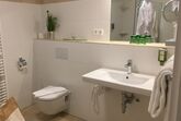 Dusche, WC, Flatscreen-Kabel TV, Minibar, Wasserkocher, Safe, Föhn, Telefon und Wifi.