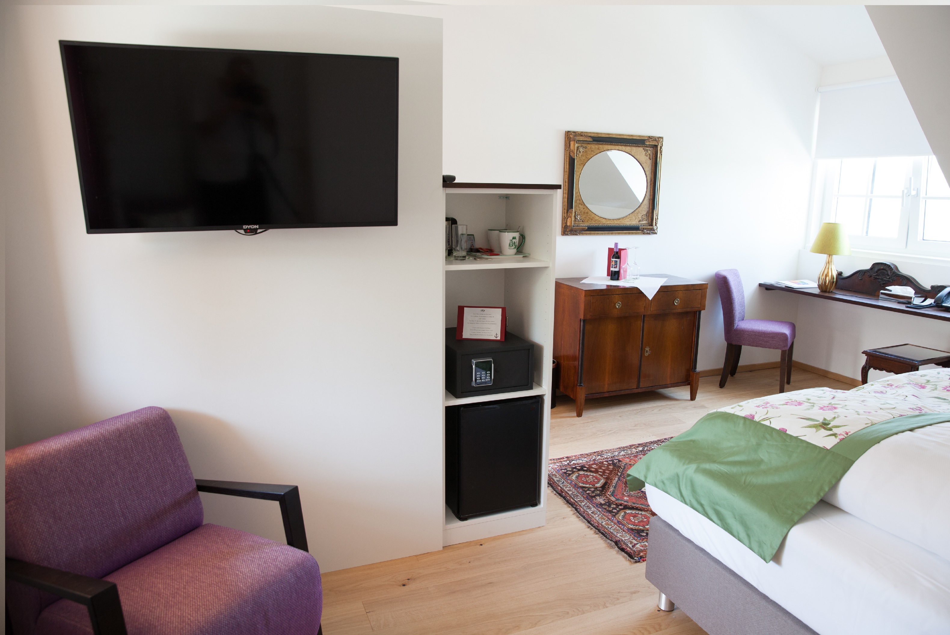 Die 2021 neu adaptierten Juniorsuiten des goldenen Ankers verfügen über Dusche oder Badewanne, WC, Flatscreen-Kabel TV, Minibar, Wasserkocher, Safe, Föhn, Telefon und Wifi.