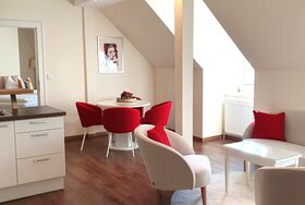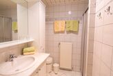 Diese sommerlich-heiter eingerichtete Ferienwohnung in der 2. Liftetage bietet behaglichen Komfort und mit 70 m² genügend Platz für drei Personen. Sie verfügt über 1 Schlafzimmer mit bequemem Boxspringbett und ausreichend Platz für Stauraum, einem großzügigen Wohnzimmer mit voll ausgestatteter Küche und Essbereich und einem extra Zimmer mit Schlafsofa, sowie zwei Badezimmern mit separaten WC's.