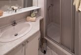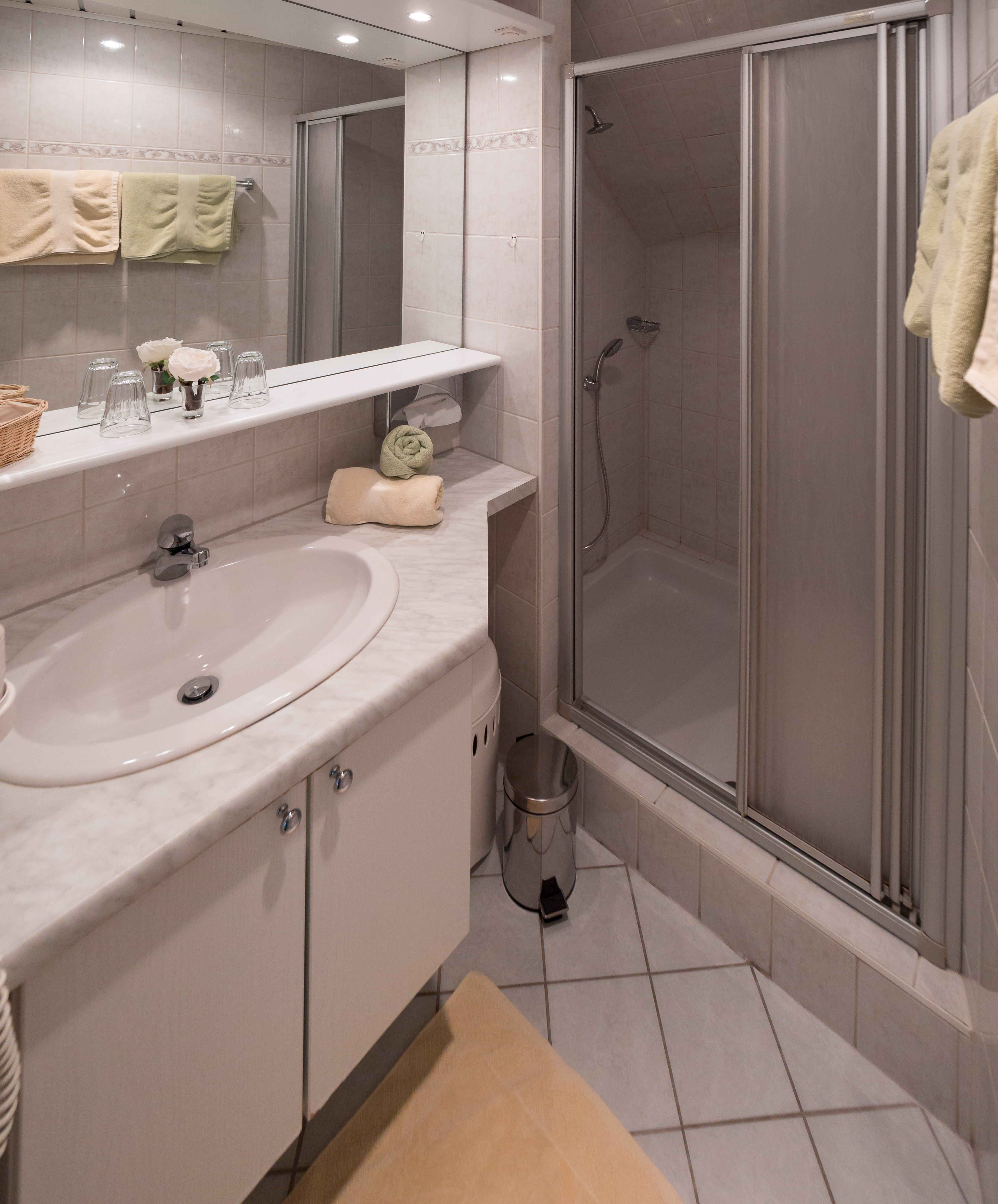 Beide Zimmer sind mit einem modernen Boxspringbett, einem Sitzbereich, einem kleinen Kühlschrank, einem Safe, Telefon, und Flat TV, sowie einem Badezimmer mit WC ausgestattet. Von diesem Zimmer aus haben Sie einen herrlichen Blick in die Gartenanlage und Ortschaft.
