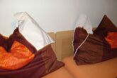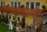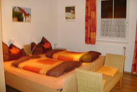 Betten mit Überlänge (210cm) als Doppelbett und zwei Einzelbetten verwendbar, Balkon im Innenhof, gemütlich und groß mit kleiner Kochnische auch für Selbstversorger geeignet