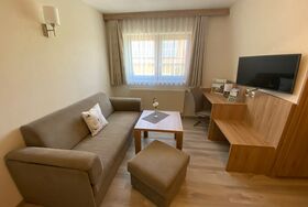 Doppelzimmer „Sommer“ ist hell, geräumig und komfortabel eingerichtet. Sie verfügen über eine eigene Dusche und WC, TV und einen gemütlichen Sitzbereich inklusive Schlafsofa. Die ausziehbare Couch bietet die Möglichkeit, dass das Zimmer auch als Drei- bzw. Vierbettzimmer genutzt werden kann. Im Zimmer ist kostenloses WLAN vorhanden.