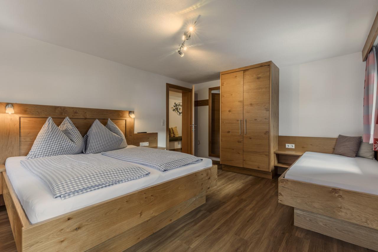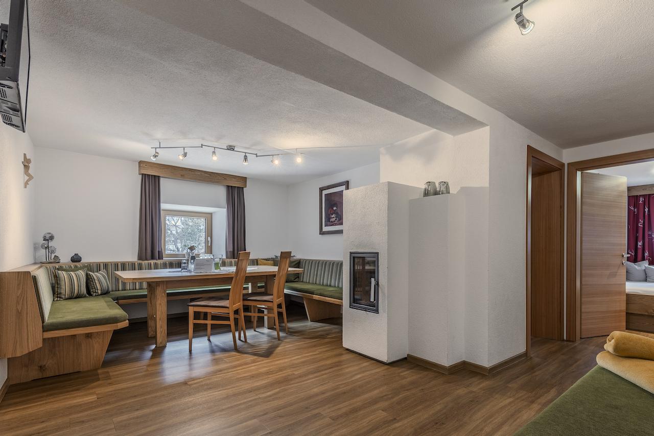 Das modern eingerichtete Appartement „Stuibenfall“ befindet sich im 1. Stockwerk mit 80 m² und ist durch einen eigenen Eingangsbereich über eine Wendeltreppe erreichbar. 2 Dreibettzimmer, ein offener Wohnbereich mit Kamin und großem Essbreich, eine komplett ausgestattete Küche mit Zugang zum Balkon, ein Badezimmer mit Badewanne und WC und ein Badezimmer mit Dusche und WC. Im Wohnzimmer und in den Schlafzimmern befinden Flat-TV. In der komplett ausgestatteten Küche stehen zusätzlich eine Kaffeemaschine mit Filter, eine Nespresso Kapselmaschine und eine Geschirrspülmaschine zu Ihrer Verfügung bereit. Ein kleiner Balkon mit Sitzgelegenheit ladet zum Verweilen im Freien ein. Ein kleiner Spielbereich für Kinder befindet sich im Parterre des Hauses.