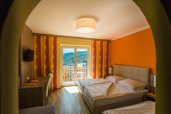 Verbringen Sie abwechslungsreiche Tage in Mönichkirchen! Nur 200 m von unserem Gasthof entfernt steigen Sie in die Sonnenbahn. Der 4er-Sessellift bringt Sie bequem auf die Mönichkirchner Schwaig - egal ob zum Skifahren im Winter oder Roller- und Mountaincart-Fahren im Sommer. Wer es gemächlicher mag, kann die Schwaigen des Wechsels auch entlang der vielen Wanderwege im Wechselgebiet erobern. Wir helfen Ihnen gerne bei der Auswahl der optimalen Route! Unsere Zimmer mit südseitigen Balkonen bieten genug Schlafplatz für bis zu vier Personen (ein Doppelbett und zwei Einzelbetten). Das Bad ist mit Dusche, WC und Fön ausgestattet. Das 22qm große Zimmer ist ein Nichtraucherzimmer, und verfügt über einen Sat-TV und Safe. Unsere Gäste können sich wahlweise in unserem Restaurant verpflegen. Außerdem können sich unsere Gäste auf der Terrasse, im Garten oder auf der Liegewiese aufhalten. Eine Sauna und Infrarot.