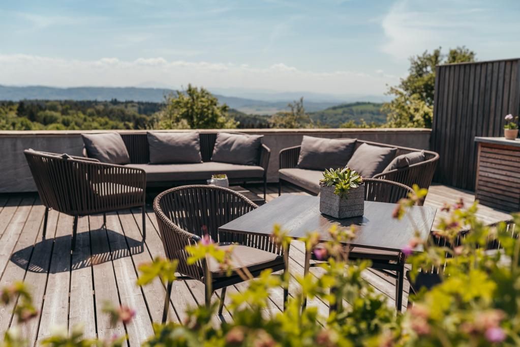 Modern, hell eingerichtet mit Naturholzmöbel und mit schönem Terrassenbalkon liegt die Ferienwohnung Nussbaum im ersten Stock unseres Gästehauses. WLAN; Sat - TV, Geschirrspüler, Kaffeemaschine, Mikro- Backrohr