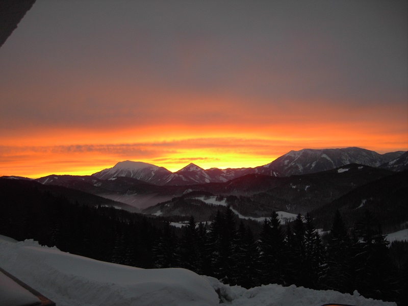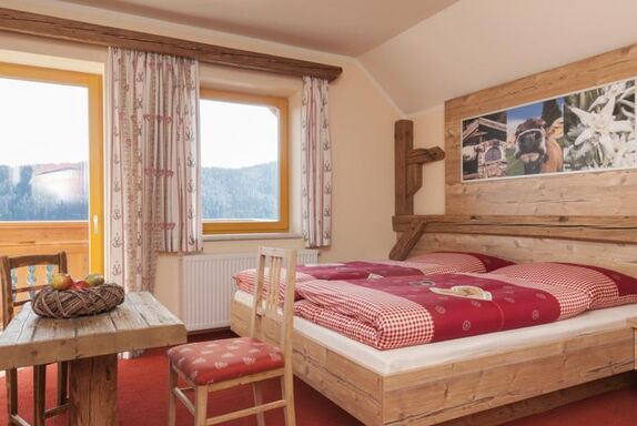 Doppelzimmer mit Balkon mit Panoramablick auf die höchsten Gipfel des Mostviertels.