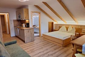 Die gemütlichen Gästezimmer befinden sich im zweiten Stock des Hauses und bieten Platz für zwei bis fünf Personen. Sie verfügen über eine Kochzeile, Dusche, WC, Föhn, SAT-TV sowie Balkon oder Terrasse mit herrlichem Blick auf die Göstlinger Bergwelt und das Hochkar. Vollholzmöbel sorgen für eine warme und angenehme Atmosphäre.