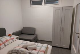 Unsere 30 m² große Ferienwohnung besteht aus 1 Schlafzimmer (mit einem Doppelbett sowie einer Zustellcouch), sowie einer Küche, Bad mit WC. Die Räume sind komplett ausgestattet mit Bettwäsche, Geschirr, Fernseher. Die Wohnung bietet für bis zu maximal 3 Personen Platz. Gratis Internet - WLAN