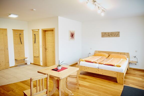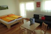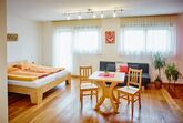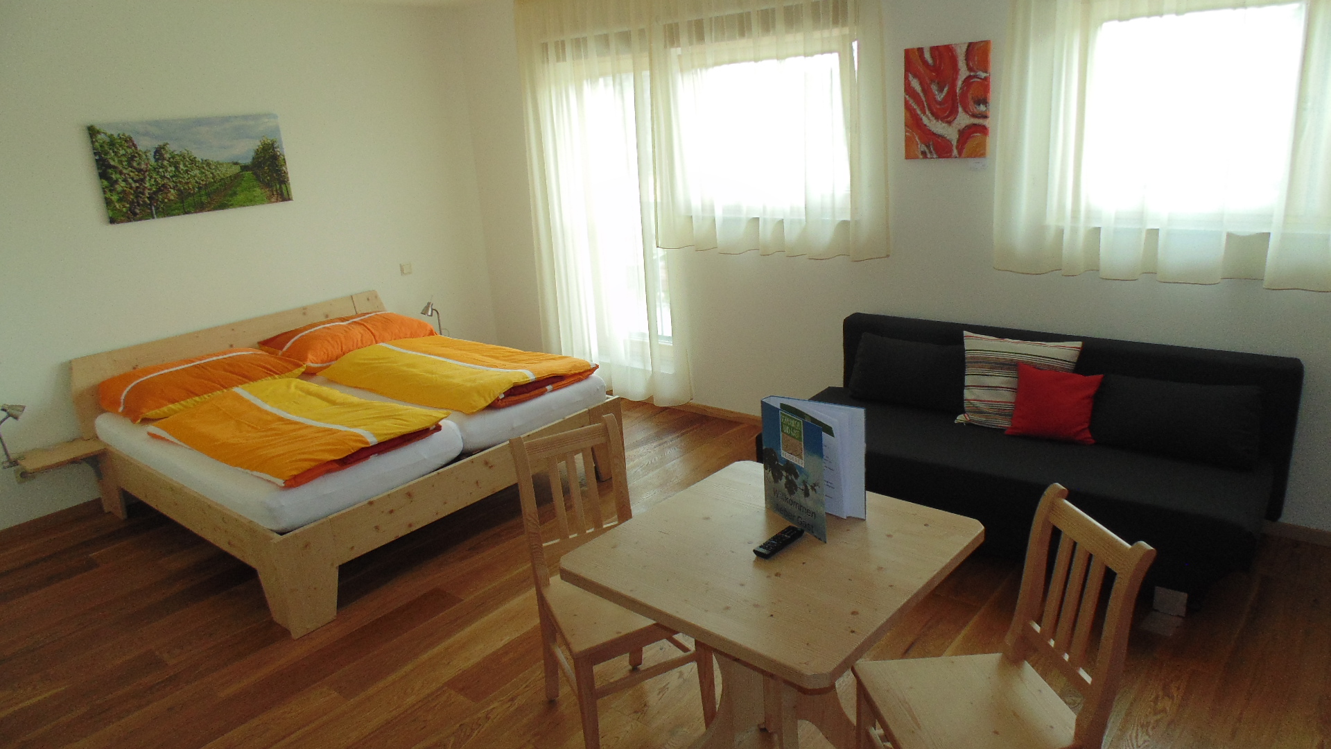 Unser geräumiges Familienzimmerzimmer Thalland liegt im Obergeschoß unseres Gästehauses. Dusche und WC finden Sie in getrennten Räumen. Auf dem gemütlichen Schlafsofa finden 1-2 zusätzliche Personen Platz. Mitreisende Kinder von 0-3 Jahren nächtigen im Bett der Eltern kostenfrei.