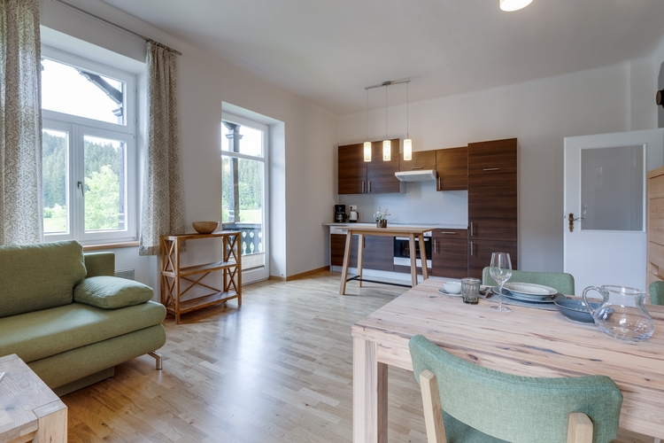 Das gemütliche Appartement See-Komfort mit Balkon und Seeblick für bis zu vier Personen befindet sich im 2. Stock des herrschaftlichen Hauses und ist rund 65 m² groß. Das Appartement ist mit einem Doppelzimmer mit Doppelbett, einem Wohn-/Esszimmer mit ausziehbarer Couch und einer voll ausgestatteten Küchenzeile, einem Bad mit Dusche und einem WC ausgestattet. Vom Balkon aus genießt man einen herrlichen Blick auf den Erlaufsee. SAT-TV und E-Heizung sind ebenfalls vorhanden.