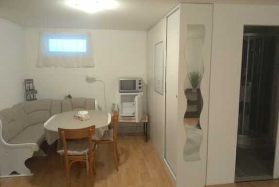 WOHNEN AM TEICH - Die Ferienwohnung besteht aus 2 schönen, ruhigen Zimmern inkl. WC und Dusche sowie Leseecke und befindet sich im Untergeschoß unseres Hauses. Gartenbenützung und Schwimmen im Teich im Sommer ist möglich.