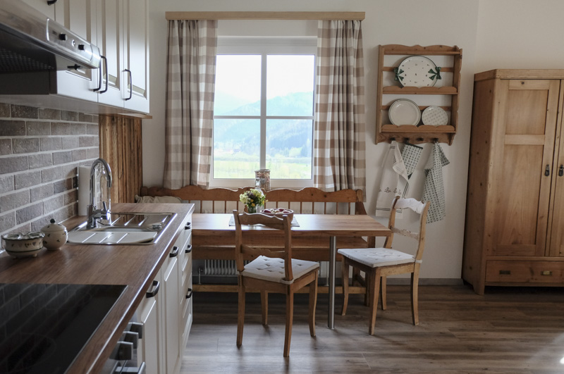 In unserer geräumigen Küche haben Sie die Möglichkeit für Ihre Lieben köstliche Speisen zu bereiten. Der Schlafplatz ist durch halbhohe Wände getrennt und somit nicht einsehbar. Eine komfortable Ausziehcouch im Wohnbereich bietet bei Bedarf zwei zusätzliche Schlafplätze.