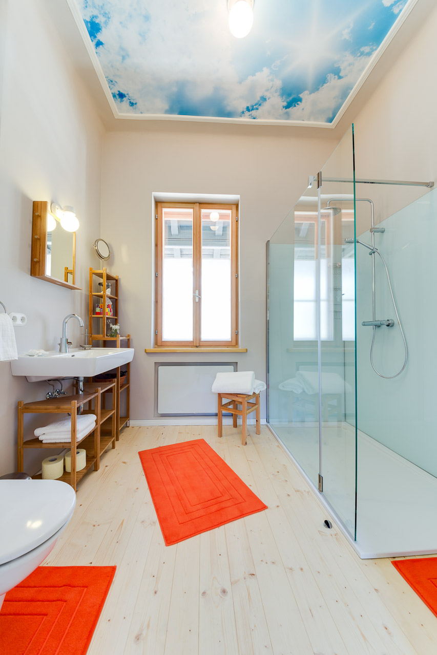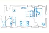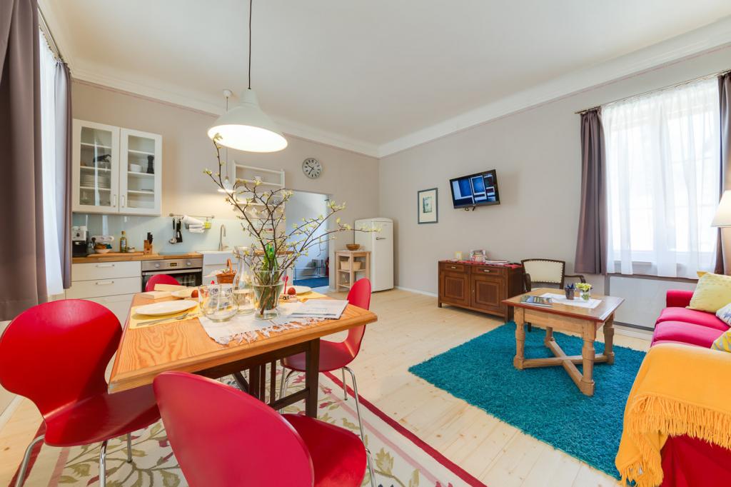 Das Appartement „Himmelstreppe“ verfügt über ein Schlafzimmer, Wohnküche und Bad und ist für 2 Erwachsene ideal. Bei Bedarf steht im Wohnzimmer eine Ausziehcouch für weitere 2 Personen.
