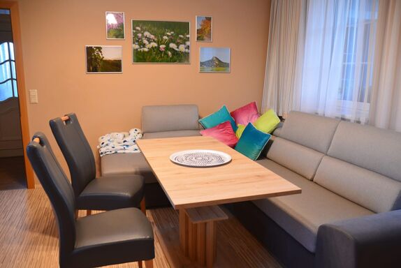 Wir bieten Ihnen eine liebevoll ausgestattete Ferienwohnung für bis zu 5 Personen am Fuße des 'Staatzer Berges'.