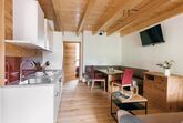 Die Appartements sind mit je zwei Doppelzimmer mit Vollholzmöbel, Zirbenbett und einer großzügigen Sonnenterrasse mit Blick auf das Hochkar ausgestattet.