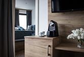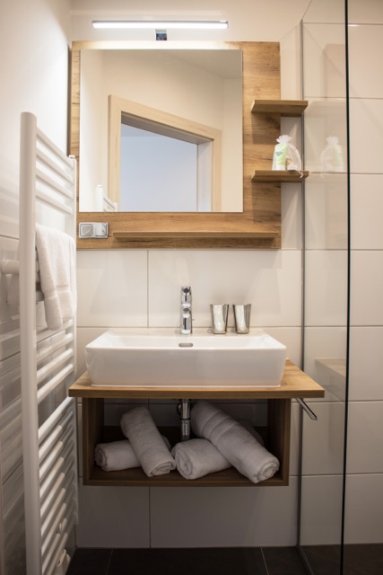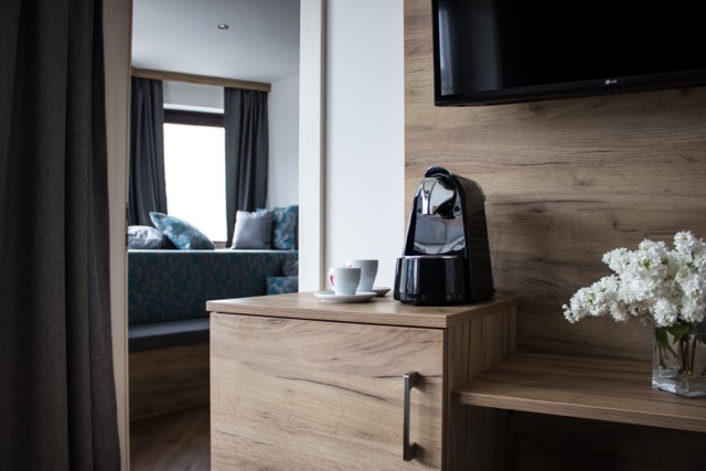 Dusche/WC,Fön, Klimaanlage, Regionale Minibar, Couch im Zusatzzimmer mit Küchenzeile, Sitzmöglichkeit, „Flussbett im Erker“ Sitzmöglichkeiten am Balkon, Espressomaschine