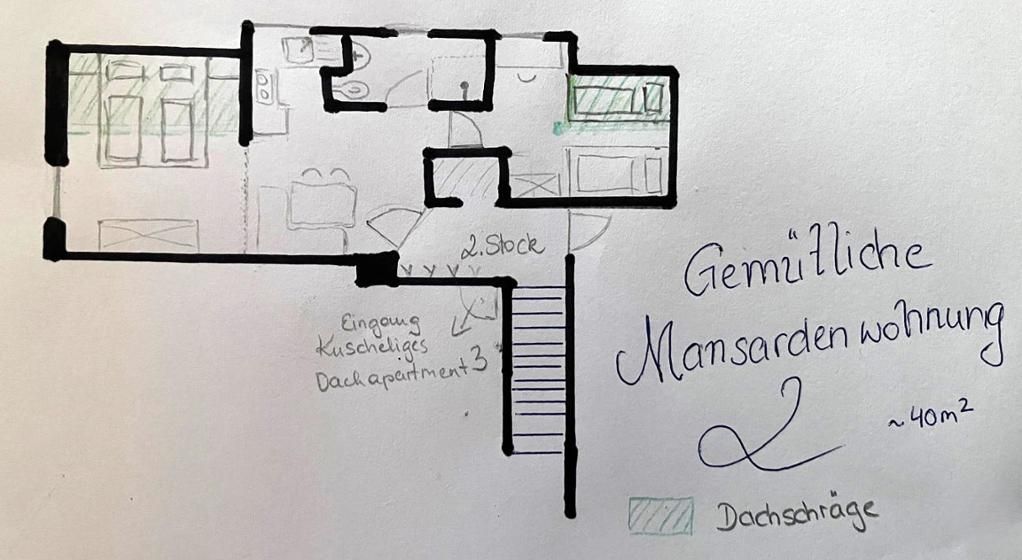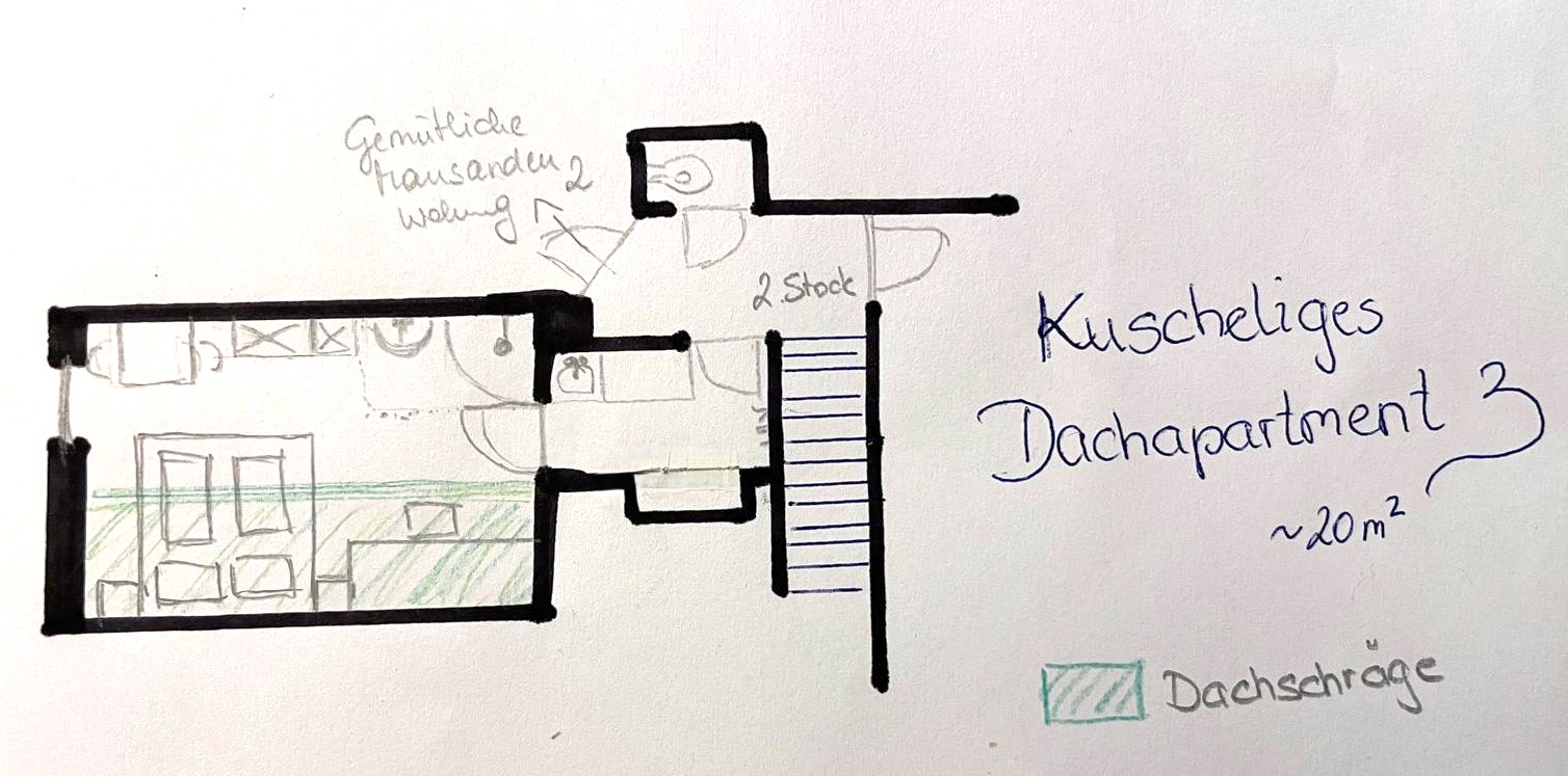 Unser kuscheliges Dachapartment 3, für Alleinreisende, zum Kuscheln oder gerne auch zum Zubuchen für größere Familien oder Freunde(für max. 2 Personen, nicht kategorisiert)