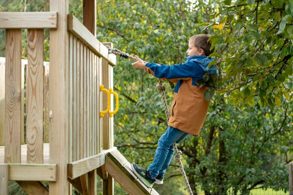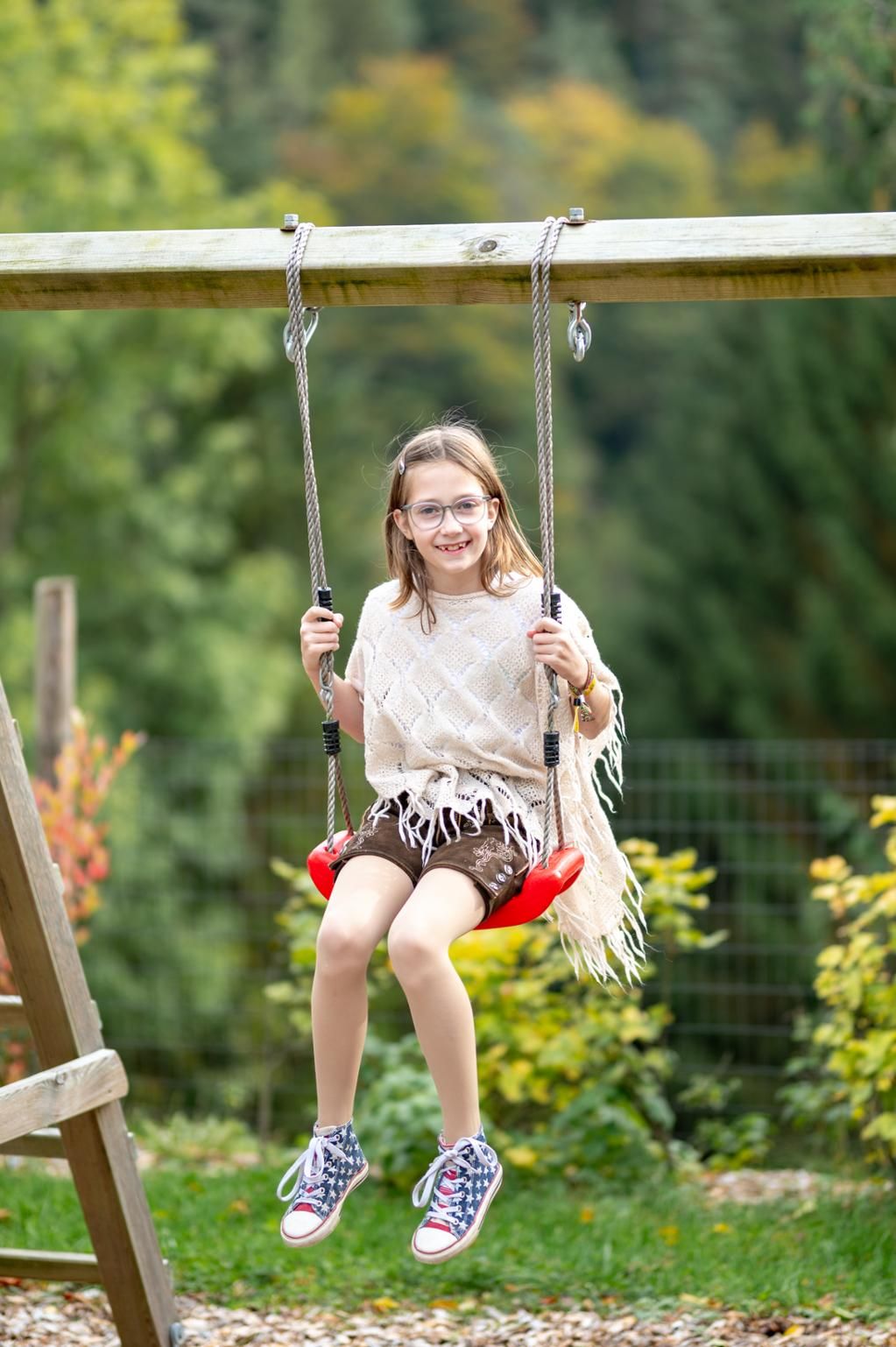 Spielplatz im Freien mit Schaukeln, großes Trampolin, Kinderfahrzeuge, Sandkiste,….