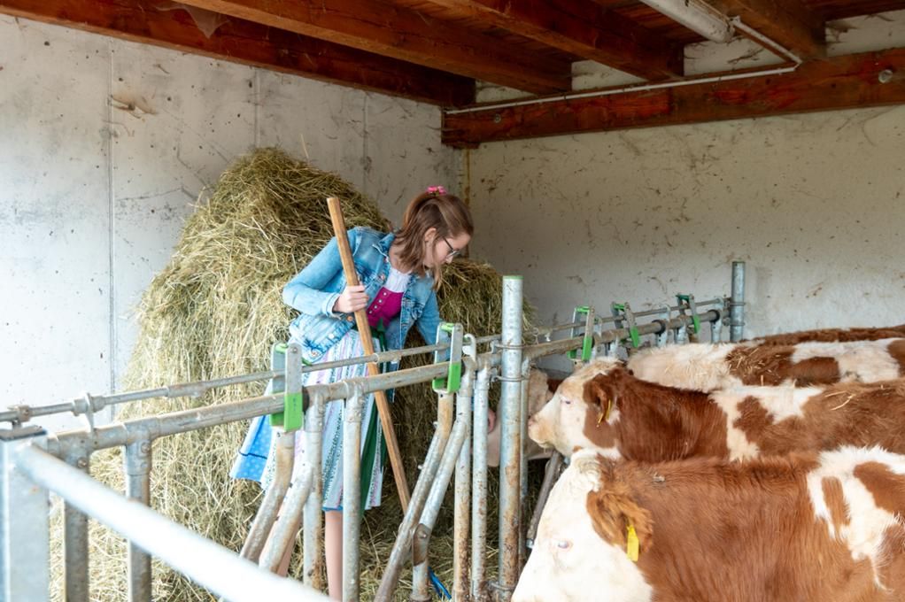 Auf dem Bauernhof tummeln sich viele Tiere wie Milchkühe, Kälber, Ochsen, Schafe, Katzen und Schweine. Habt ihr schon mal frische BIO-Milch getrunken?