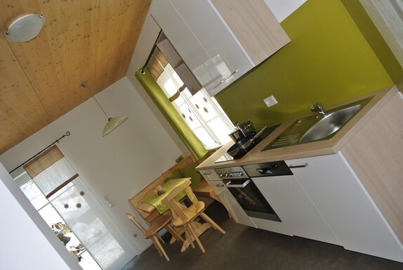 Eine sehr große, nach Osten ausgerichtete, barrierefreie Ferienwohnung mit direkten Zugang zur Terrasse und weiter in den Wiesenbereich erwartet Sie hier. Es besteht hier die Möglichkeit das Auto in der Garage zu parken um problemlos in die Wohnung zu gelangen. Hier in dieser Wohnung geht die Küche offen in den Schlafbereich über. Ein sehr großes behindertengerechtes Badezimmer und WC ist auch für Rollstuhlfahrer gut geeignet.
