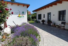 Frühstücksraum (= Aufenthaltsraum) mit Terrasse                                                                                                        Garten mit Spielplatz                                                                                                                                              kostenloses WLAN                                                                                                                                                    kostenlose überdachte Parkplätze