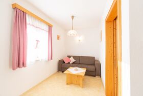 Die Wohnung „XeisBlick (38 qm) ist eine mittelgroße, praktisch eingerichtete Wohnung für drei Erwachsene oder zwei Erwachsene + zwei Kinder. Genießen Sie den Ausblick auf den Redtenberg, das Gesäuse (Xeis) und den biologischen Bauern-garten. Die Wohnung verfügt über: Schlafzimmer (Doppelbett), Wohnraum (Schlafcouch), Küchenzeile (Wasserkocher/Kaffeemaschine), Bad/Dusche (Fön), separates WC, Sitzbereich, Fußbodenheizung, SAT-TV, Radio, Bettwäsche und Handtücher