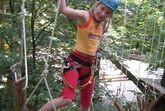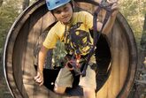 Tagsüber warten sieben Parcours im Kletterwald auf Abenteurer: Ob mit dem Fahrrad in 5 Metern Höhe von Baum zu Baum fahren oder mit einem Bottich durch die Luft sausen – hier kommt jeder auf seine Kosten. Für kleine Gäste gibt es einen Kletterspielplatz.
