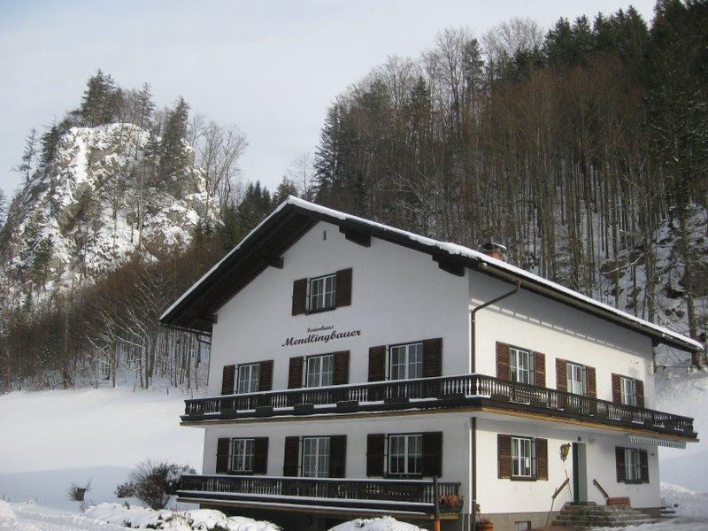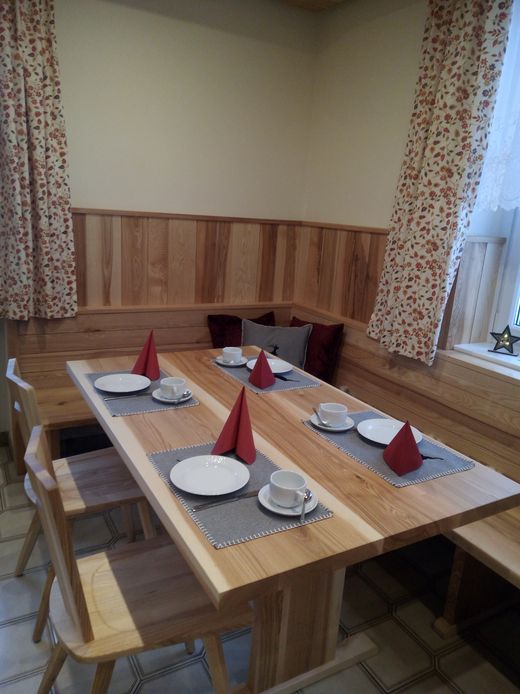 Unser Ferienhaus bietet Platz für bis zu 17 Personen. Es stehen 5 Doppelzimmer, 1 Drei-Bettzimmer und 1 Vierbettzimmer zur Verfügung. Alle Zimmer sind mit Dusche und WC ausgestattet und verfügen über einen Balkon oder Terrasse. Die große Küche ist mit einem Elektroherd, Holzofen, Mikrowelle, Geschirrspüler, Kühlschrank, Wasserkocher, Kaffeemaschine und ausreichend Koch- und Essgeschirr eingerichtet. Der großzügige Gemeinschaftsraum mit TV und Satellitenanschluss bietet ausreichend Platz für gemeinsames Essen und gemütliche Stunden. Im Winter steht ein beheizter Skikeller zur Verfügung.