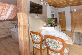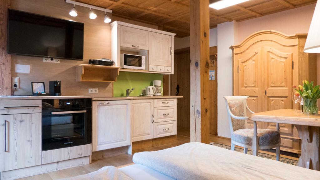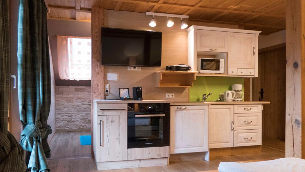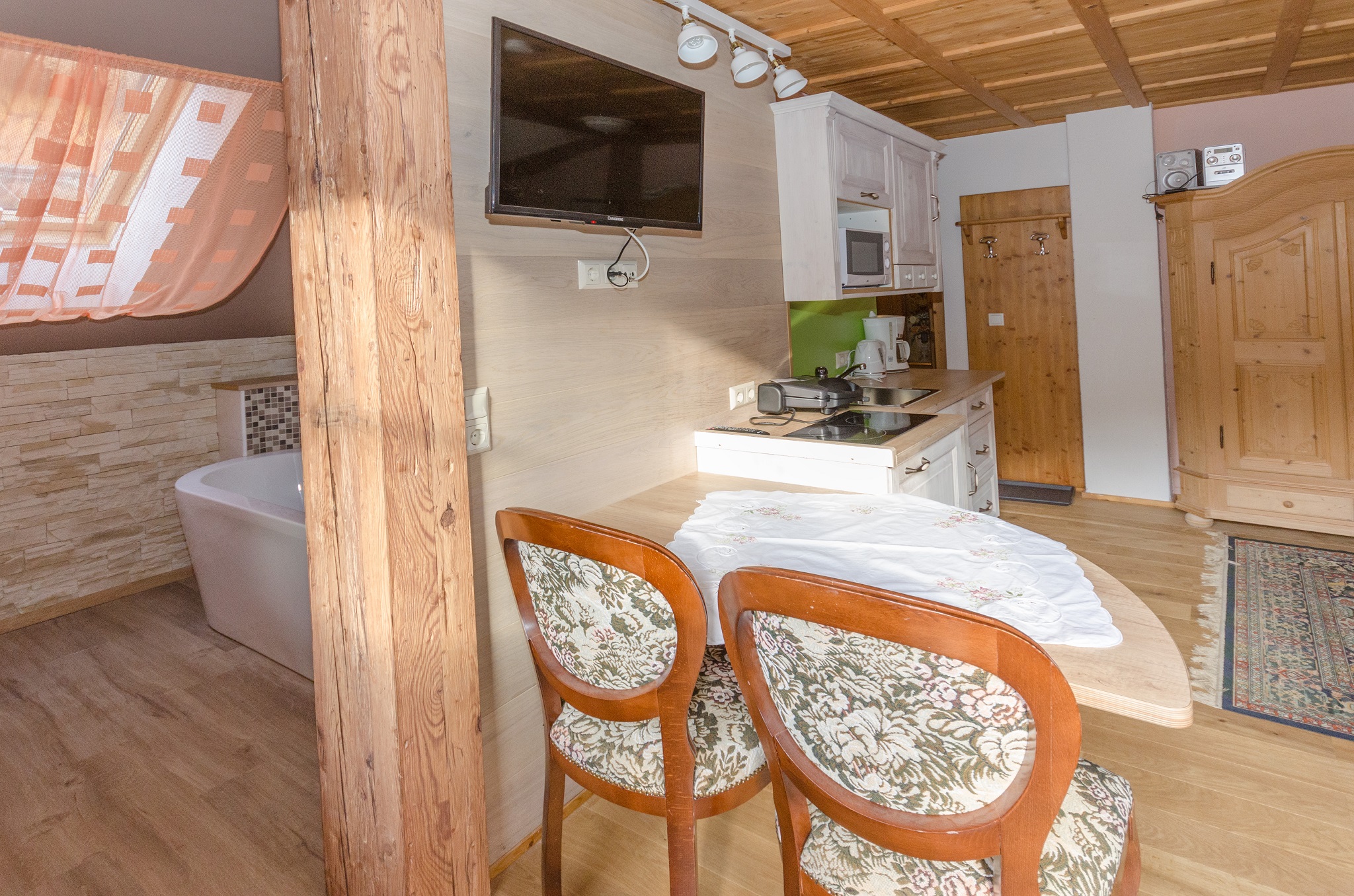 Die ideale Unterkunft für eine Skitour am Geisenberg oder für ausgiebiges Wandern im Pielachtal sowie um sich einfach mal zurückzuziehen. Absolut ruhig gelegen in Schwarzenbach im Pielachtal, ist unser Appartement Spitzkogel-Blick. Das gemütliche Zimmer ist mit einer Küchenzeile, Esstisch und einem Sofa mit Fernseher ausgestattet. Die Küchenzeile ist voll ausgestattet unter anderem mit Mikrowelle, Wasserkocher, Kaffeemaschine und Kühlschrank. Das offengestaltete Appartement verfügt über ein Doppelbett, ein Badezimmer mit Dusche und WC sowie einer Badewanne im offenen Wohnbereich. Bei einer Buchung mit 4 Personen steht das Sofa als Schlafmöglichkeit zur Verfügung. WLAN und Parkplatz stehen kostenfrei zur Verfügung.