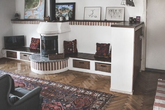 Wohnung 110m²: Küche, großzügiger Wohnraum mit Kachelofen, 1 Schlafzimmer