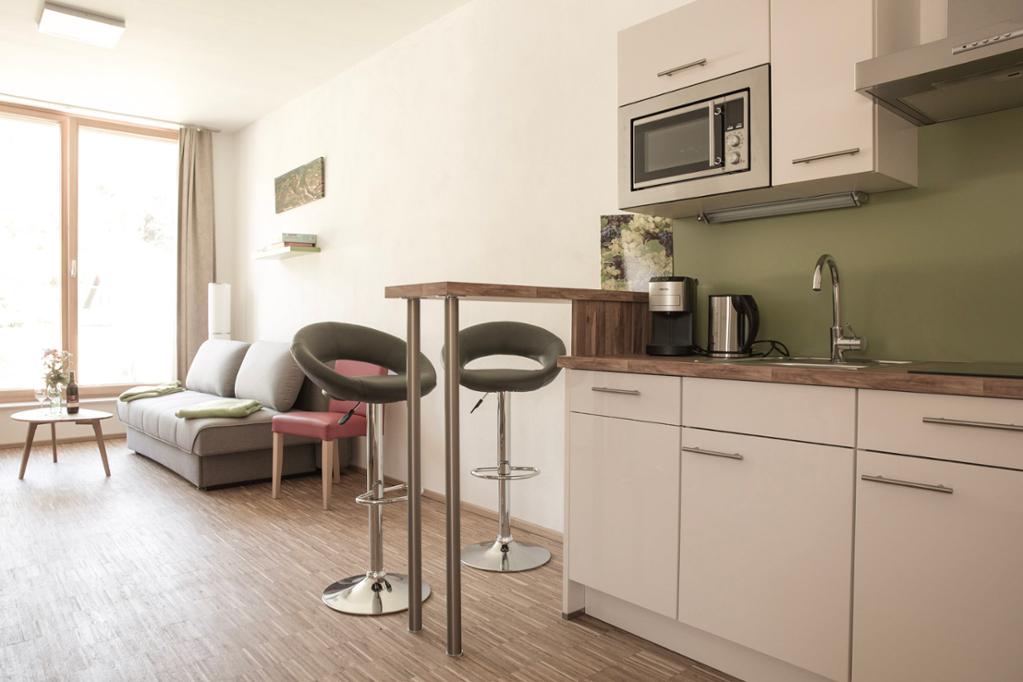 Die Ferienwohnungen sind nach unseren wichtigsten Lagen benannt : Ferienwohnung Wechselberg und Ferienwohnung Gaisberg und verfügen über getrennten Schlaf und Wohnbereich. Die Küche ist voll ausgestattet aber wer sich im Urlaub kein Frühstück machen möchte kann auf Anfrage gerne ein Frühstücksservice dazu buchen. Das Sofa im Wohnbereich kann auch zu einem Bett ausgezogen werden. Natürlich verfügt auch jede Fereinwohnung über ein getrenntes Bad mit Dusche und Wc. Babyausstattung, Gitterbett, Klappbett, Hochstuhl, Babyfon,... auf Anfrage möglich. Auch ein Abstellraum für Fahrräder ist vorhanden.