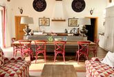 Der 70 qm große Küchen- und Wohnbereich im Erdgeschoss hält eine gemütliche Couchecke, einen offenen Kamin sowie einen großen Essbereich bereit. Direkt angeschlossen finden Sie die offene und voll ausgestattete Küche mit Geschirr für 14 Personen, Geschirrspülmaschine, Kühlschrank und einem Kaffee-Vollautomaten. Einen Full-HD Fernseher mit Kabelanschluss und Netflix-Zugang ist im TV/Spielzimmer vorhanden.
