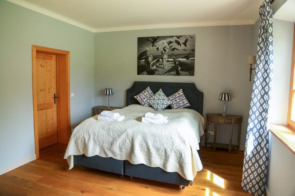 Die traditionelle Bauweise verbindet moderne und anspruchsvolle Interieurs mit bester technischer Ausstattung. Das Einrichtungskonzept vereinheitlicht natürliche Farben und Materialien auf höchstem Niveau – das Ergebnis ist eine stilvolle Ruhe-Oase. Das Landhaus Litschau bietet Platz für maximal 14 Personen und ist eine hervorragende Wahl für alle Liebhaber der Natur und des ländlichen Lebensstils. Die Wohnfläche erstreckt sich auf 400 m² und 2 Etagen – mit vier Doppelschlafzimmern und einem ausgebauten 6-Bett-Dachgeschoss. 3 Doppelzimmer verfügen über Boxspring-Doppelbetten (1,80m x 2,00m), 1 weiteres Schlafzimmer über 2 Einzelbetten (0,90m x 2,00m) und das Kinderschlafzimmer im Dachgeschoss über 6 Einzelbetten. Zudem finden Sie 4 En-Suite-Badezimmer im Haus, die jeweils mit Dusche bzw. Badewanne und WC ausgestattet sind. Feinste Luxus-Bettwäsche und flauschige Handtücher werden 1x pro Woche bereitgestellt.