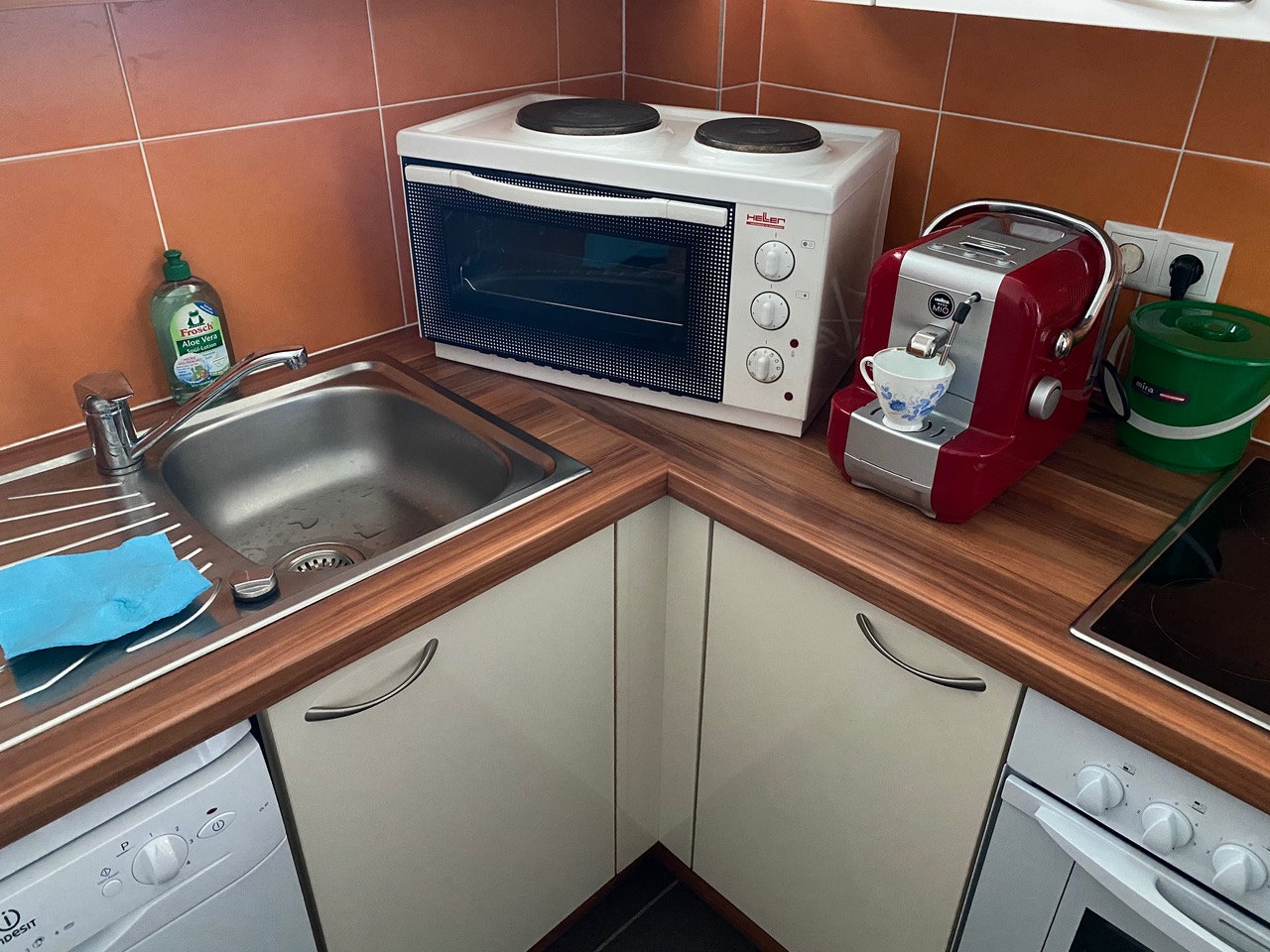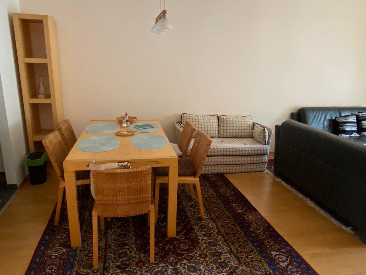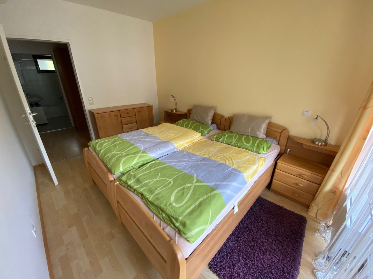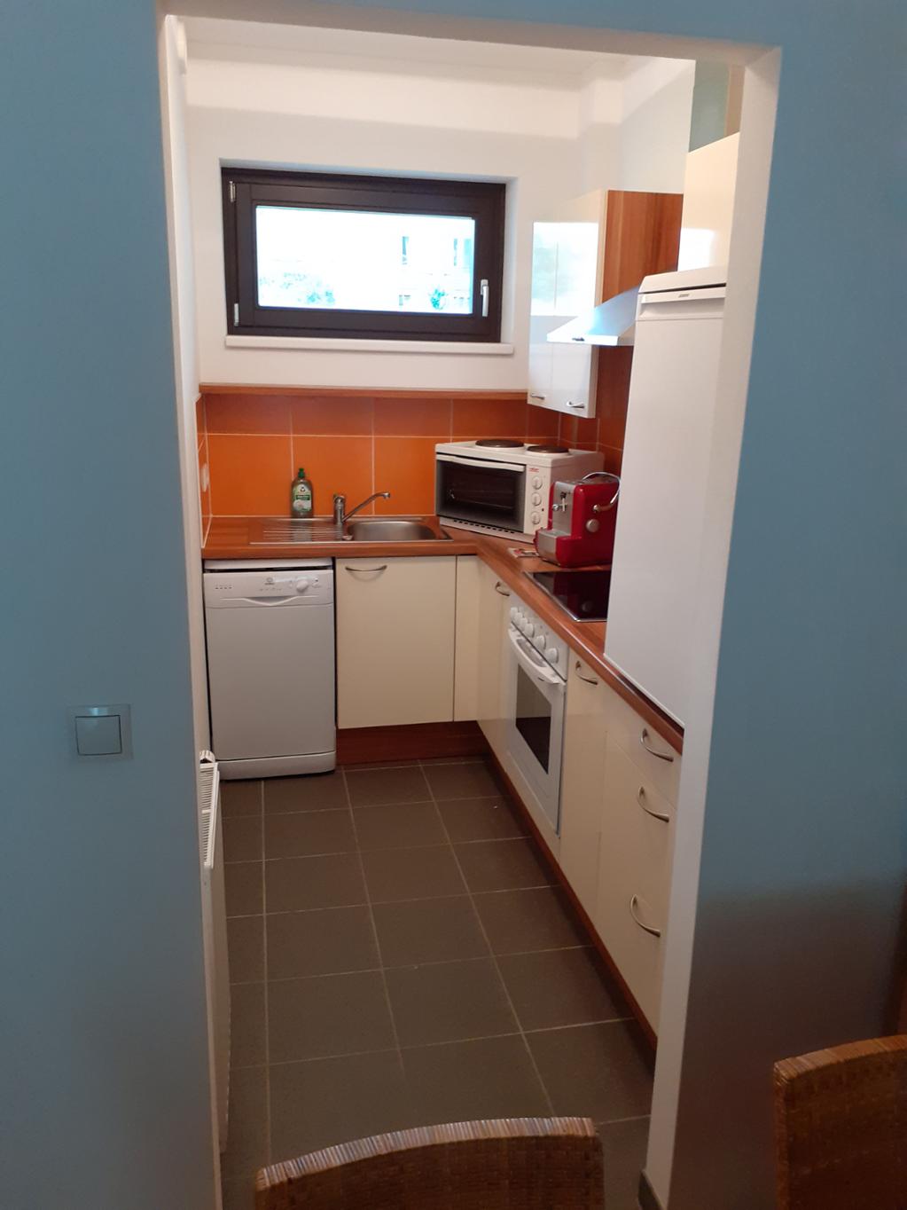 Die Wohnung verfügt über ein separates Schlafzimemr mit Doppelbett und Schrank. Für die dritte Person steht ein Schlafsofa im Wohnbereich zur Verfügung. Der Wohnbereich ist zudem mit einem TV und einer Essecke ausgestattet. Die Küche liegt extra und ist komplett ausgestattet (Backofen, Herd, Kühlschrank mit Gefrierfach, Mikrowelle, Kaffeemaschine, Geschirr, Besteck, Küchenwäsche und viele weitere Küchenutensilien). Das Badezimmer ist mit einer Badewanne und einem Haartrockner ausgestattet. Das WC liegt separat. Handtücher sind für Sie bereitgelegt und die Betten sind bei Anreise für Sie bezogen.