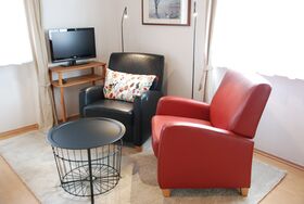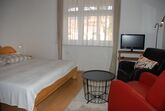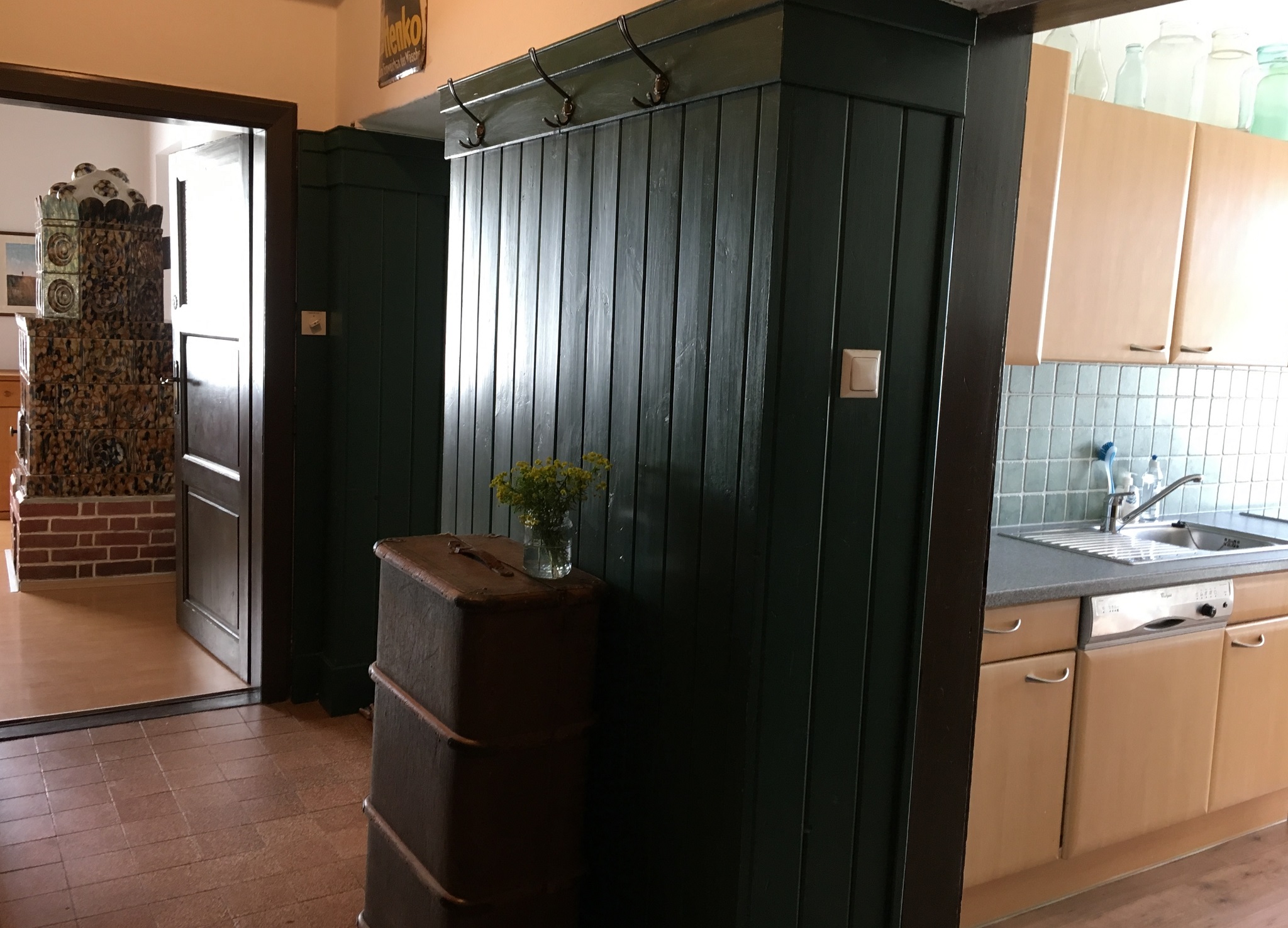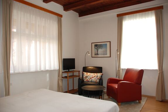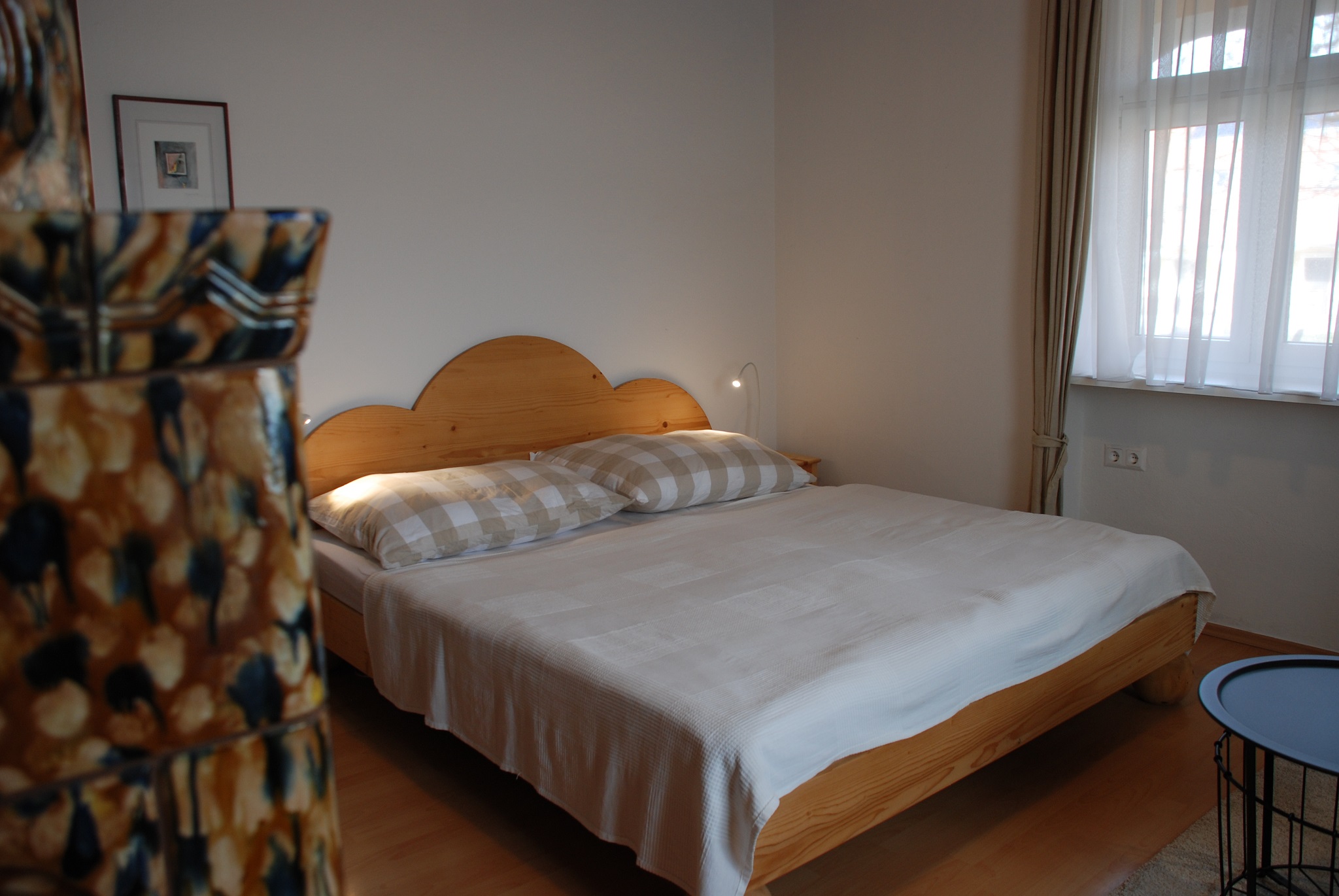 In unserem Apartment (Einzelbelegung möglich) mit grossem Doppelbett (1,80m x 2m) und gemütlicher Sitzecke. Aus einem der beiden Fenster des Zimmers hat man einen schönen Blick auf den großen Innenhof, das andere Fenster zeigt in den Garten. Eine hohe Holzdecke im Zimmer sorgt ebenfalls für Gemütlichkeit. Im Zimmer gibt es direkten Zugang ins Bad mit WC, die Küche befindet sich gleich neben dem Gästezimmer. Die Gästeküche ist eigens für die Benützung unserer Gäste.