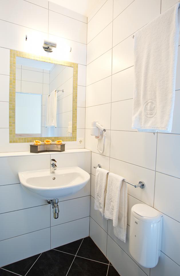 Modern ausgestatteten Gästezimmer sind mit Dusche/WC, Fön, Kosmetikspiegel, orthopädische Bandscheibenmatratzen, HD Sat-TV Flachbildfernseher, kostenloses-Flächendeckendes WLAN und Zimmersafe ausgestattet.