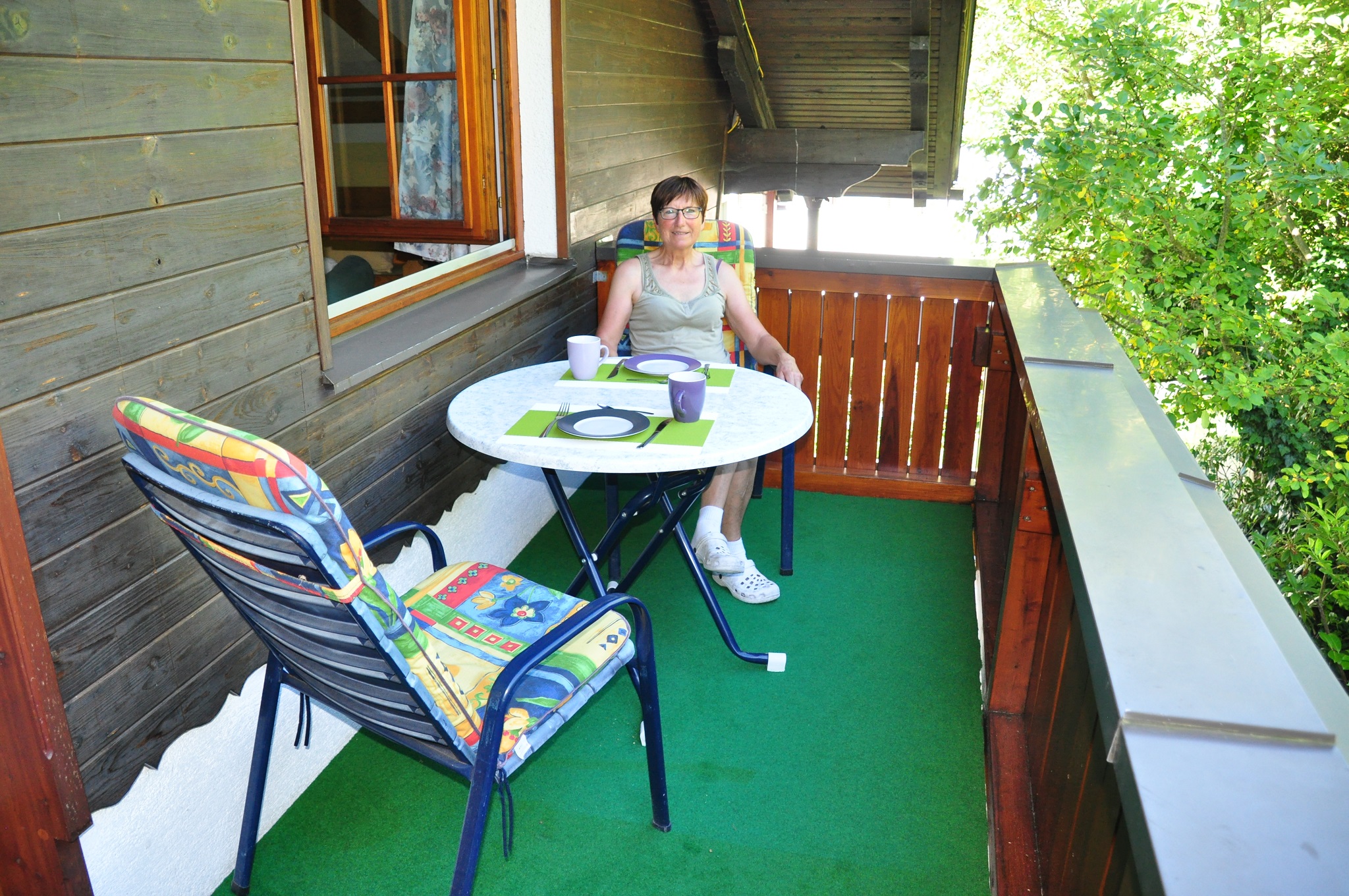 Das Apartment bietet einen sehr großen und gemütlichen Balkon mit Blick ins Grüne zu den Enten, Pferd und wenn Sie Glück haben sehen Sie auch Rehe.