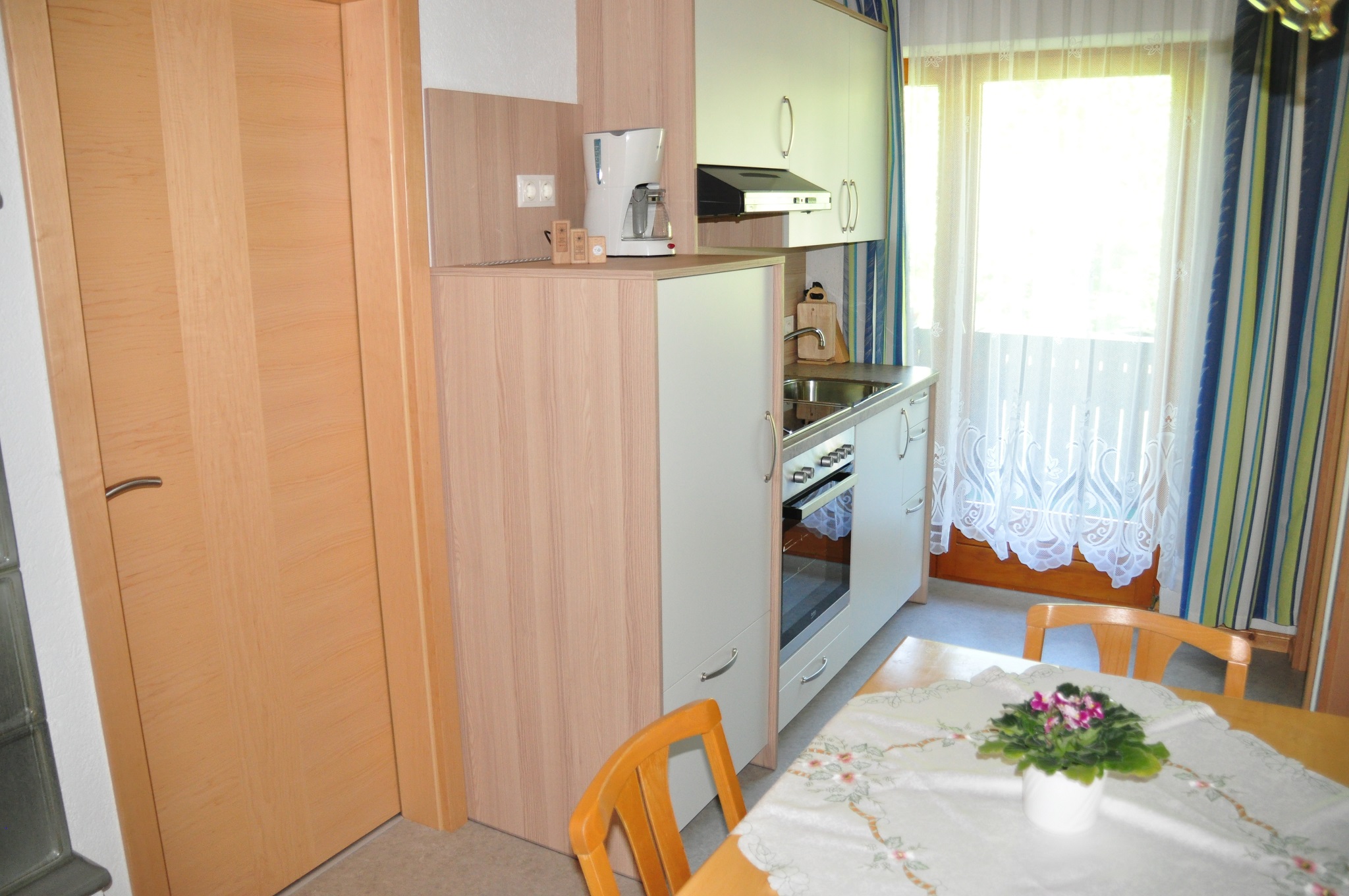 Die Küche ist mit allen wichtigen Küchengeräten wie 2-Platten E-Herd, Backrohr, Geschirr, Küchenutensilien, Mikrowelle, Kühlschrank, Essbereich ausgestattet. Es sind bereits wichtige Utensilien wie: Salz, Pfeffer, hauseigene Gewürze, Öl und Essig vorhanden.