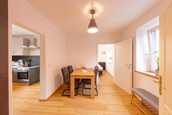 Unser Apartment Lohstampfe mit 50m² Wohnfläche in der ersten Etage bietet Platz für 1-4 Personen. Die komplett ausgestattete Küche mit Geschirrspüler, Kühlschrank, Herd, Backofen, Mikrowelle, Wasserkocher, Toaster, Sodastream, Milschschäumer und Kaffeemaschine lässt keine Wünsche offen. Das Apartment verfügt über zwei Schlafzimmer mit jeweils einem Doppelbett. Das geräumige Badezimmer mit Dusche, WC und Föhn rundet das Gesamtbild ab. Vom Apartment aus blickt man direkt auf den Garten. Bettwäsche und Handtücher sind vorhanden. Bitte beachten Sie, dass keine Haustiere erlaubt sind. Das WLAN und den Parkplatz vor dem Haus können Sie kostenfrei nutzen.