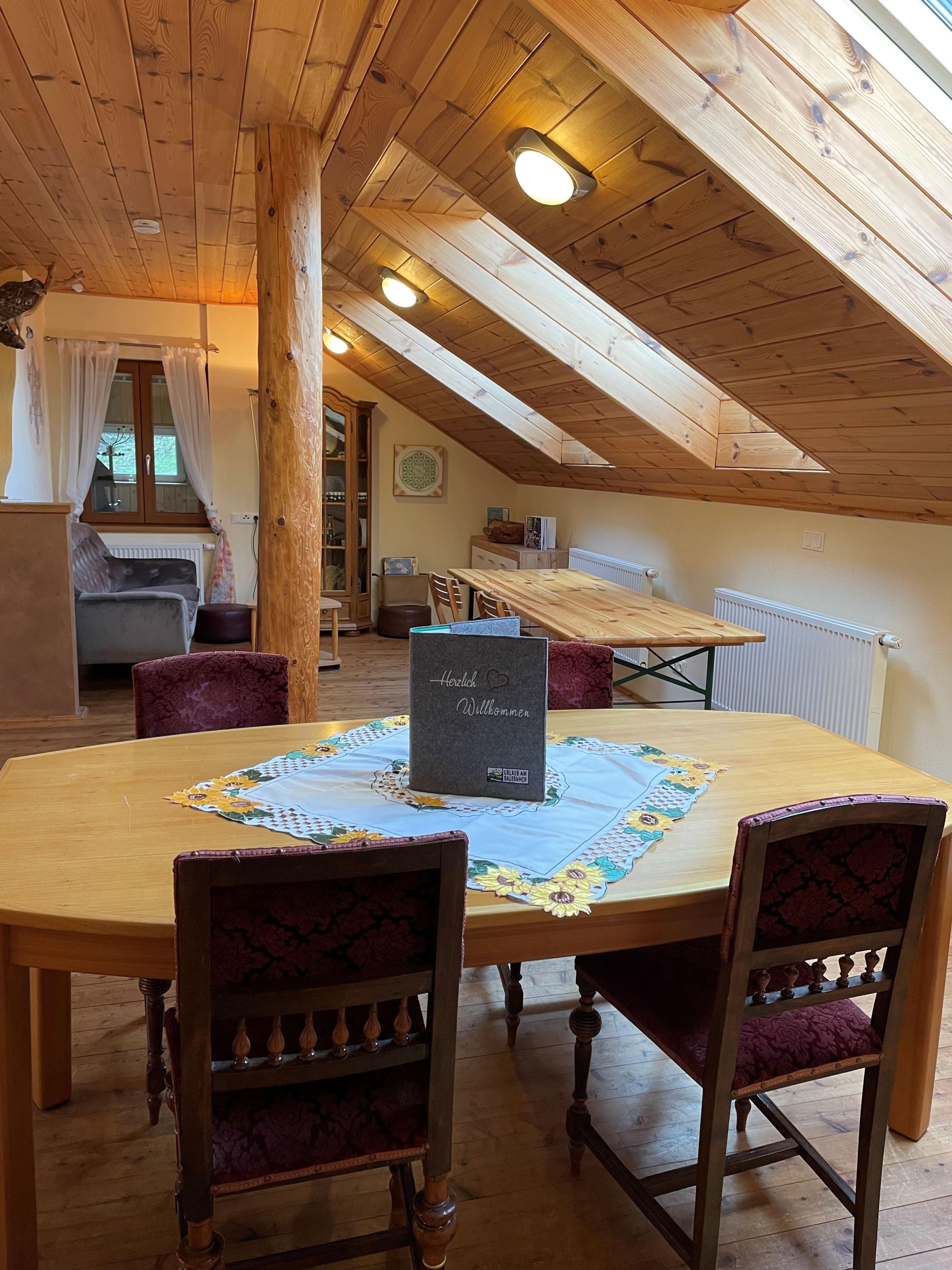 Die Ferienwohnung wurde und wird regelmäßig als Seminar- und Vortragsraum genutzt und bietet 25 Menschen eine entspannte und harmonische Atmosphäre, um ihr Wissen zu erweitern.