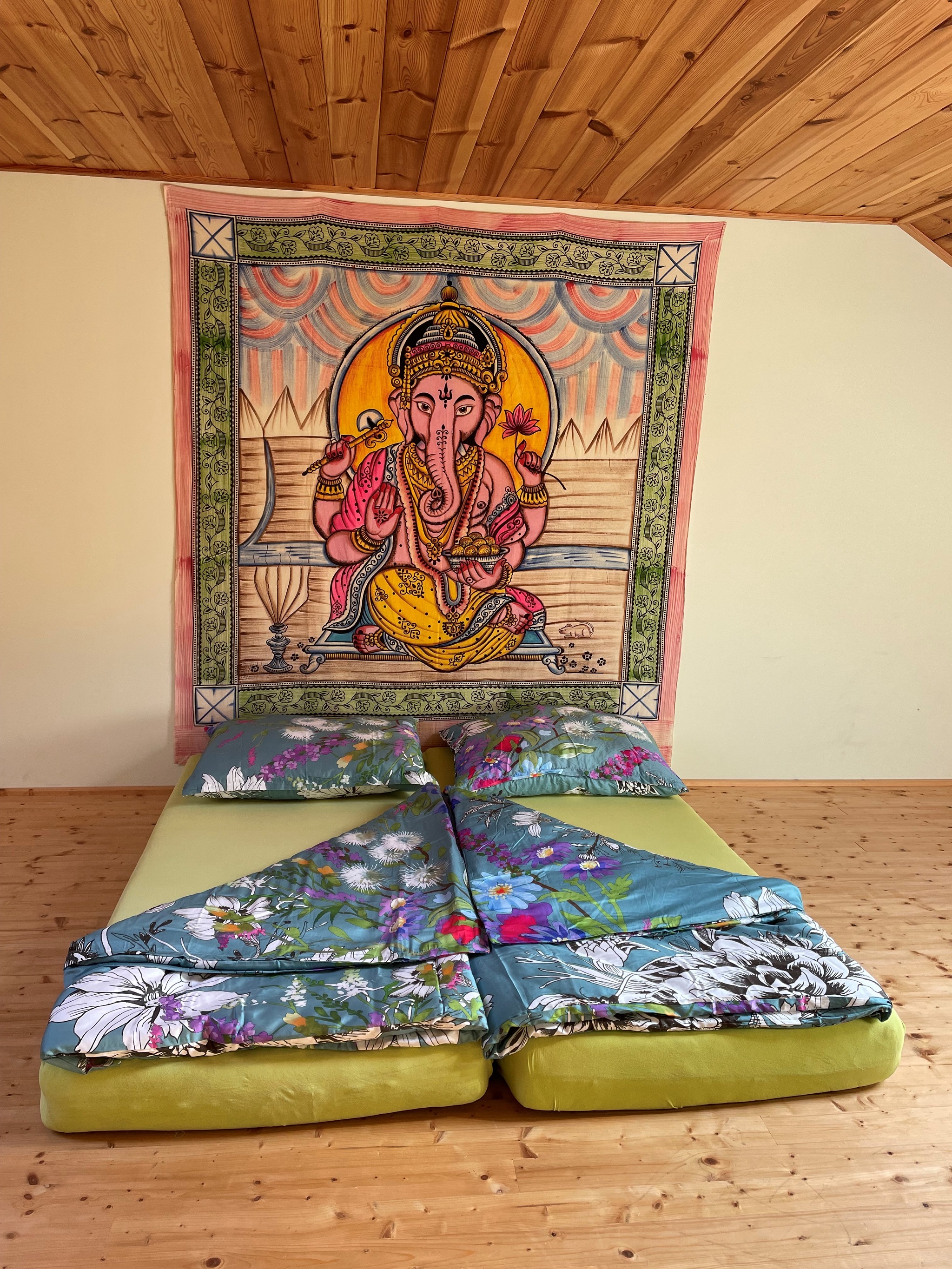 Das Schlafzimmer bietet auf Matratzenlager-basis eine Schlafmöglichkeit für bis zu 6 Personen (größere Gruppen auf Anfrage). Die Bettwäsche wird kostenlos von uns zur Verfügung gestellt. Ein Bad sowie eine getrennte Toilette vervollständigen den Komfort.