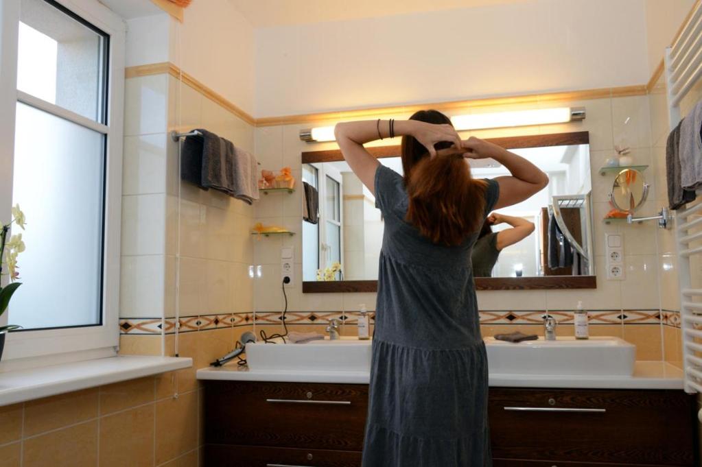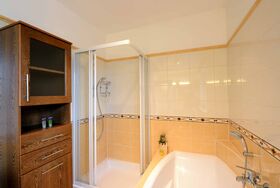 Handtücher, Duschtücher, Duschgel, Haarfön sowie Waschmaschine und Waschmittel stehen im Badezimmer zur Verfügung. Wäscheständer, Bügeleisen, Bügelbrett befinden sich im Schlafzimmer sowie Flachbild – SAT TV im Wohnzimmer.Kostenfreies WLAN, Privater Eingang sowie Parkmöglichkeit im Carport!