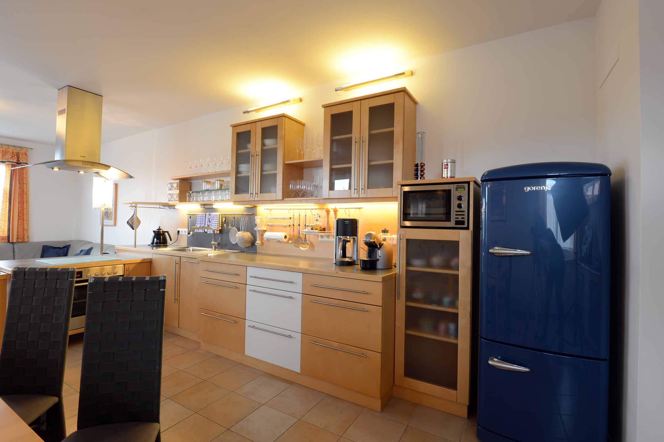 Die Ferienwohnung Regina ist eine nette und großzügig ausgestattete 84 m2 große Ferienwohnung für 2 – 4 Personen. Kinder und Haustiere sind herzlich willkommen! Bei Bedarf steht ein 2. Schlafzimmer zur Verfügung (Gesamtwohnfläche damit 101 m2).In der topausgestatteten und gemütlichen Küche befindet sich ein Miele 4-Platten Ceranfeld mit Backrohr und ein Miele Geschirrspüler, Mikrowellenherd, Kühl- Gefrierschrank mit Kellerzone, Toaster, Eierkocher, Kaffeemaschine, Nespressoautomat, Wasserkocher, Mixer, Stabmixer, Nespressokapseln, Kaffee- und Teezubehör, Geschirrspül Tabs und Spülmittel, Geschirrtücher sowie Geschirr mit Gmundner Keramik und Gläser.