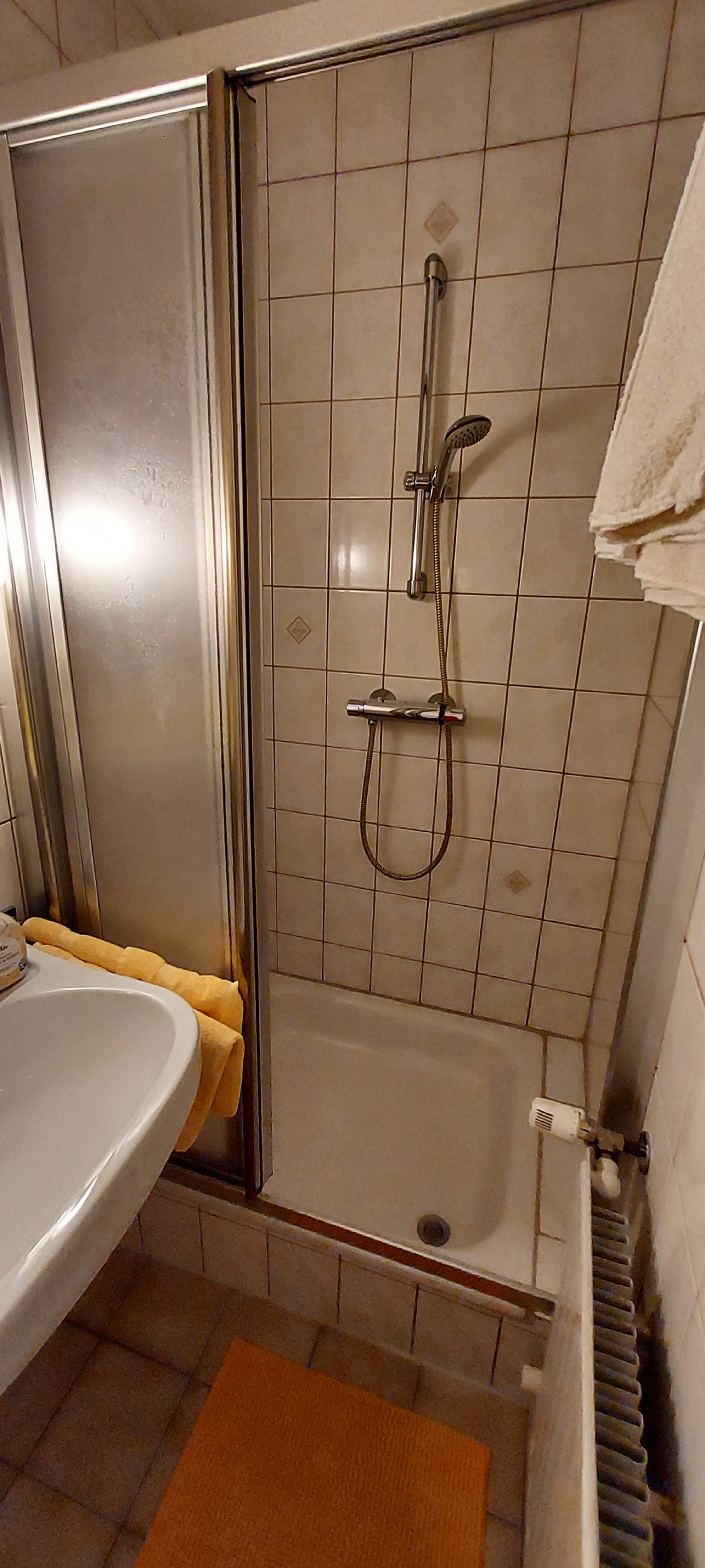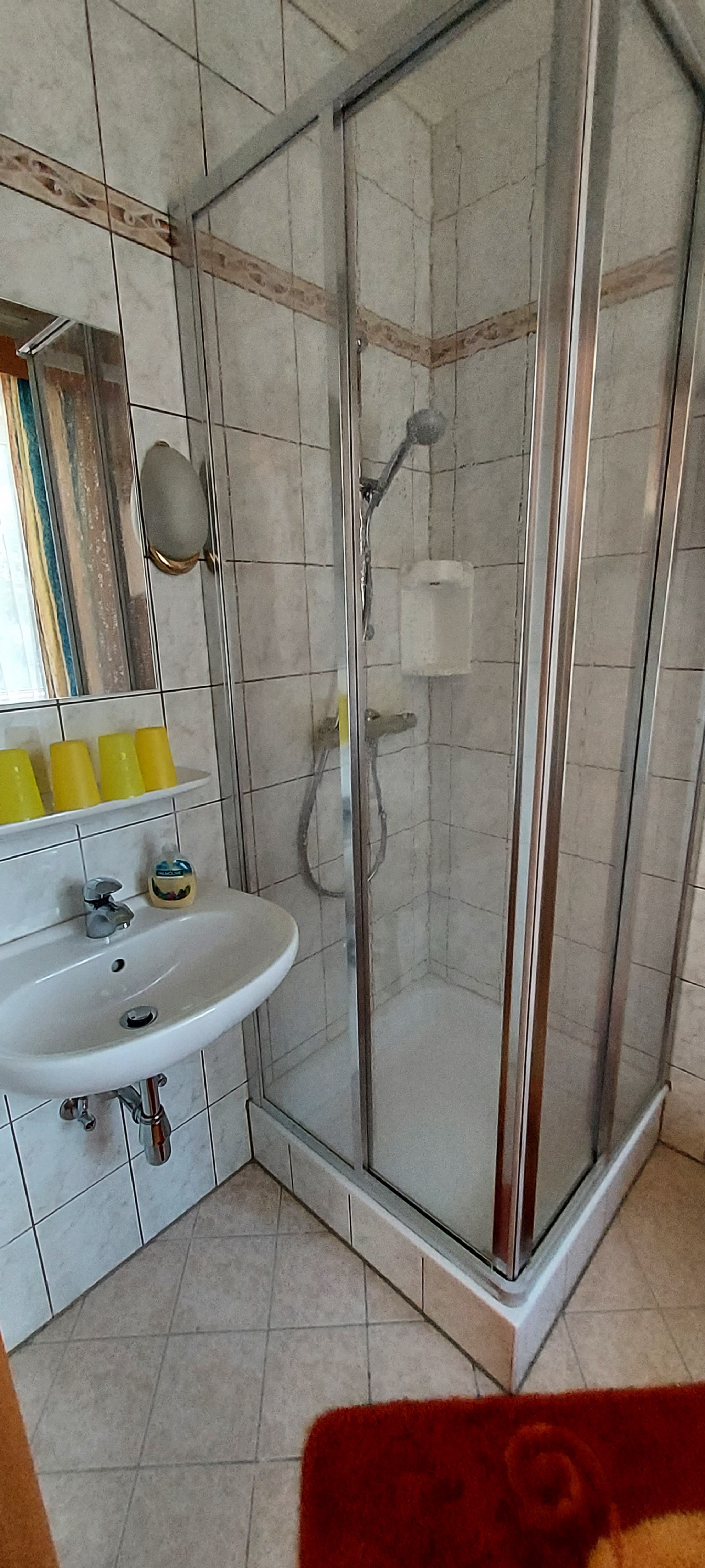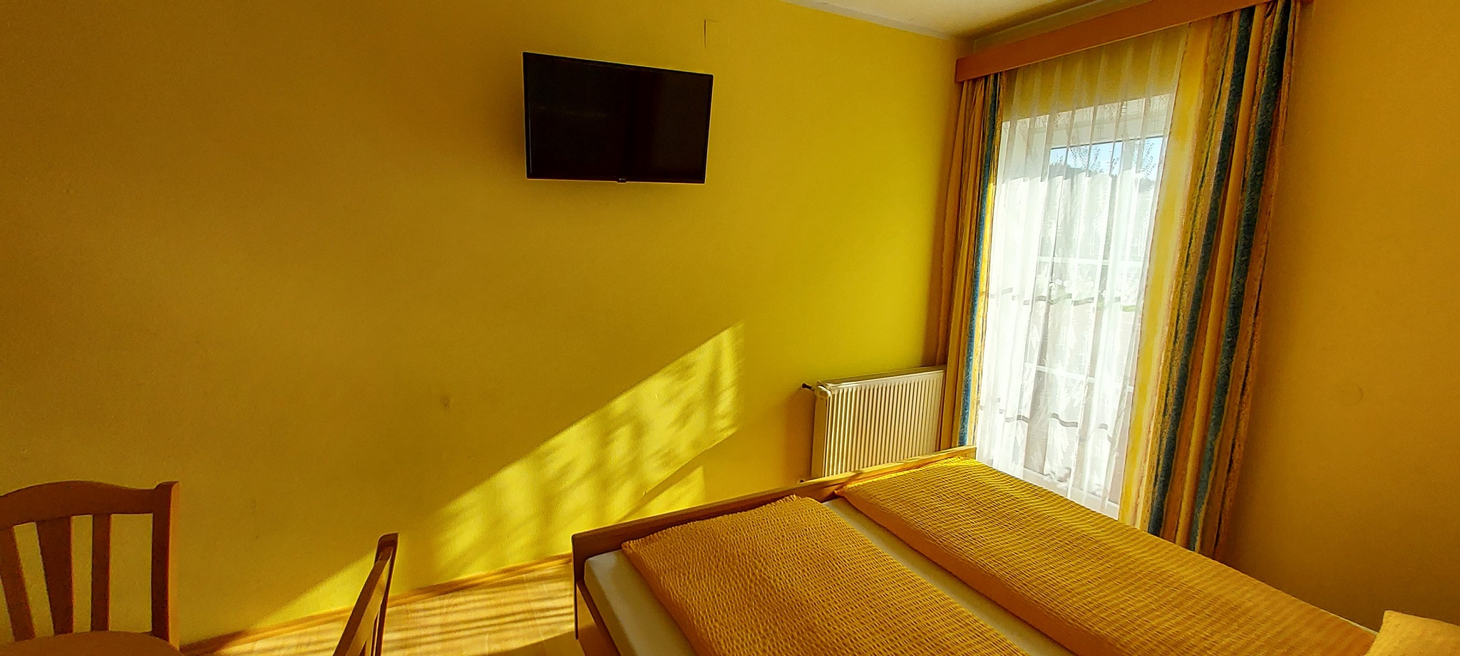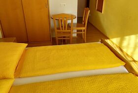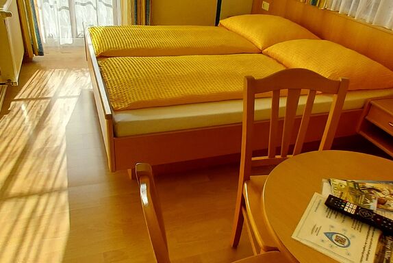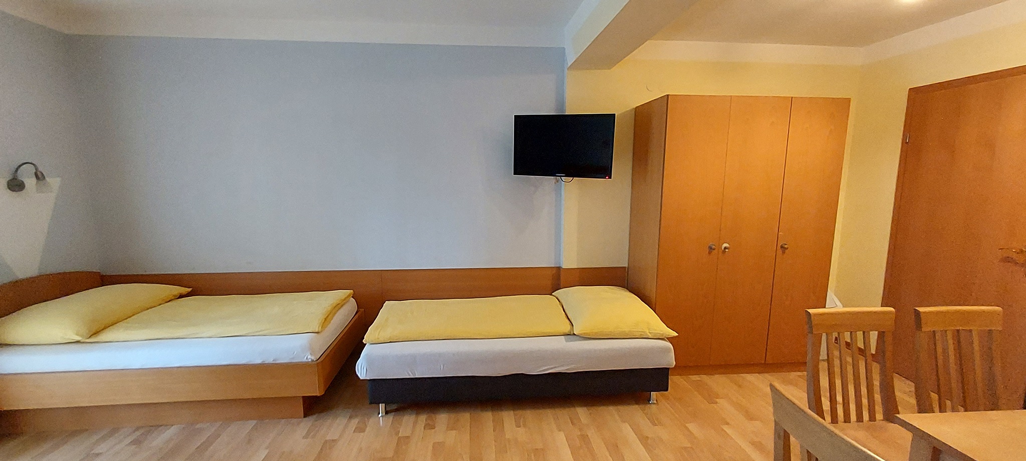 Das helle und geräumige Vierbettzimmer mit 30qm bietet einen traumhaften Blick auf die Berge. Es verfügt entweder über ein Doppelbett und zwei Einzelbetten oder ist mit zwei Doppelbetten ausgestattet. Ein Kleiderschrank und TV befinden sich ebenfalls im Zimmer. Das Badezimmer mit Dusche oder Badewanne, WC und Fön rundet das Gesamtbild ab. Auf dem Balkon können Sie entspannte Abende verbringen. Haustiere sind gestattet. Möglicherweise fallen Gebühren an. Das WLAN und den Parkplatz vor dem Haus können Sie kostenfrei nutzen.