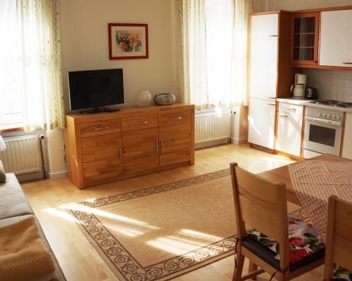 Zum Haus gehören auch ein großer Garten und eigene Gästeparkplätze zur Verfügung. Auch Haustiere sind willkommen.