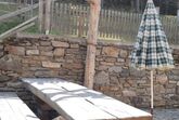 Vor dem Haus befindet sich eine große Sitzgarnitur mit Grillmöglichkeit