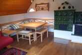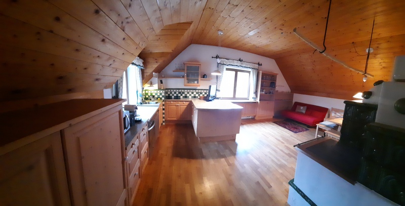 In der 56 m² großen Wohnung befinden sich eine komplett eingerichtete Wohnküche mit Holz- und Kachelofen. Ein Doppelzimmer, Badezimmer mit Dusche und WC, TV, kostenfreies W-LAN.