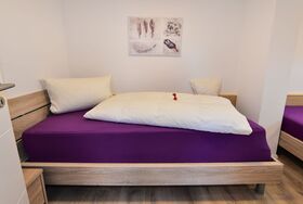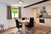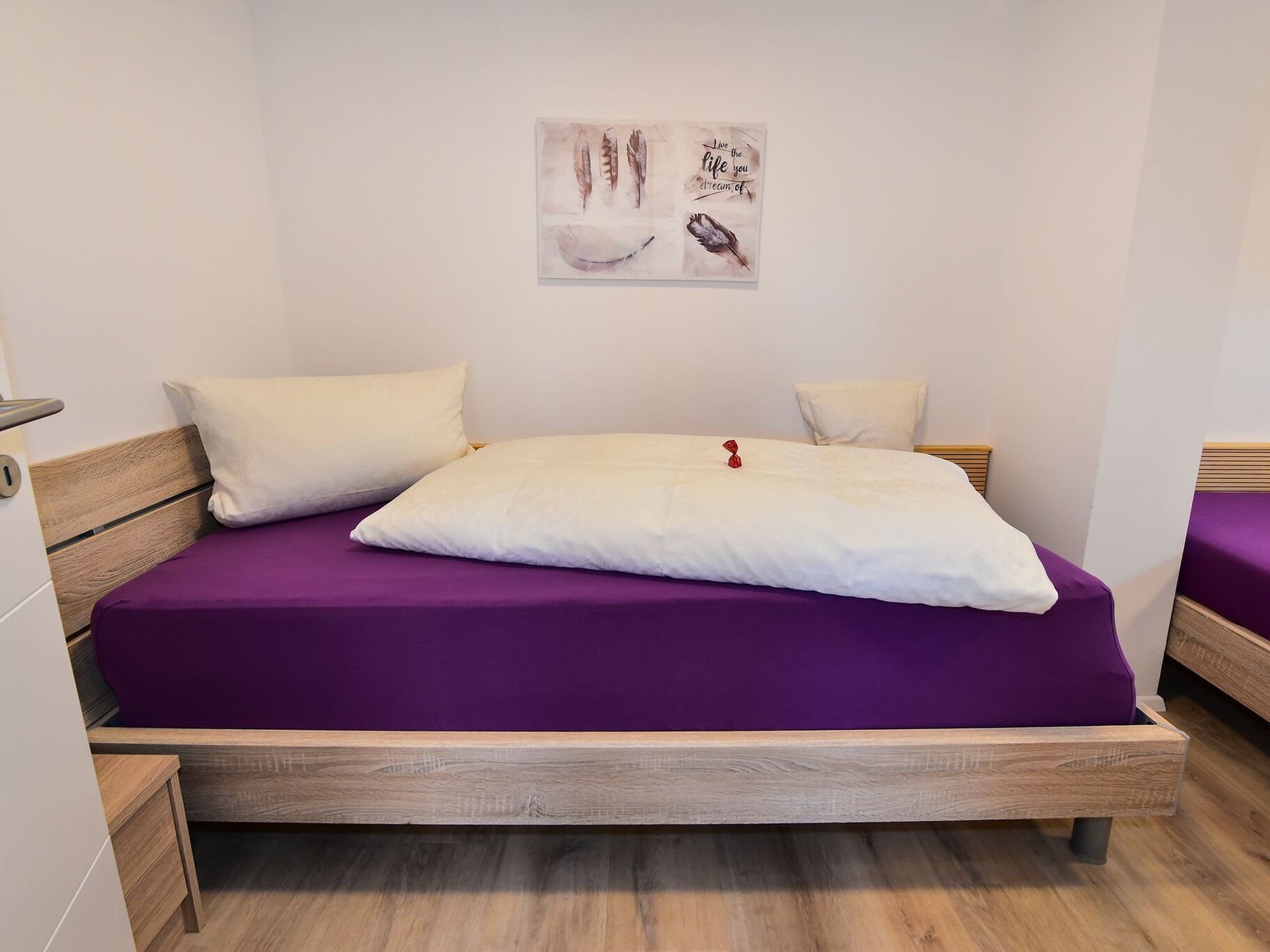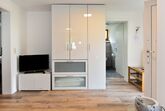 Es bietet durch zwei separate Betten im Schlafzimmer mit einem 140cm Bett- und einem Einzelbett Platz für 2 bis 3 Personen. Zudem ist die Wohnung mit einem stufenlosen Bad und begehbarer Dusche ausgestattet.