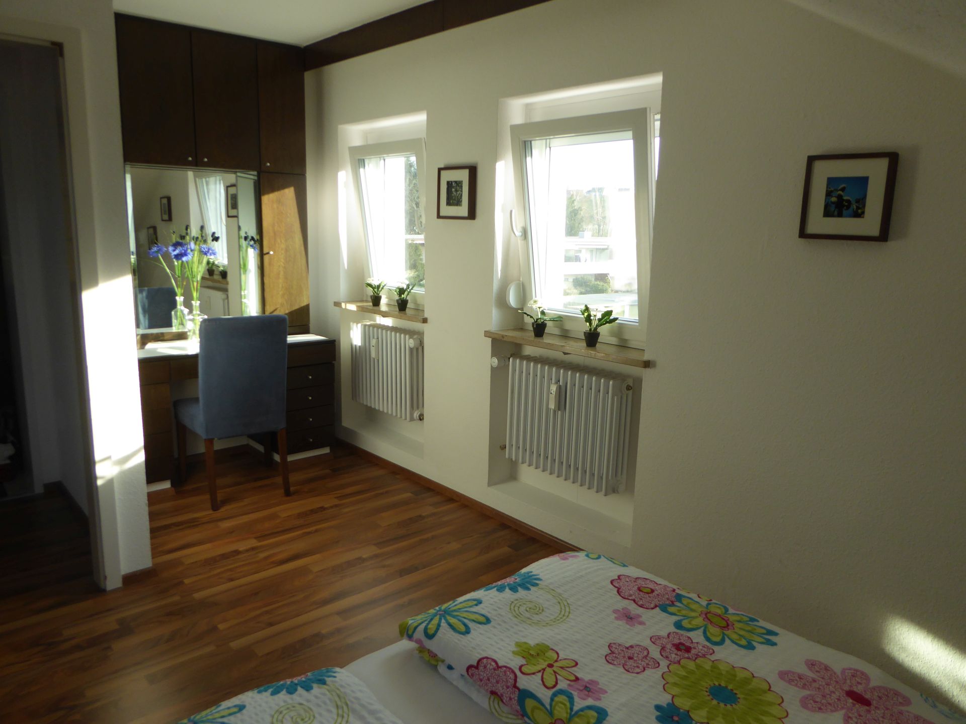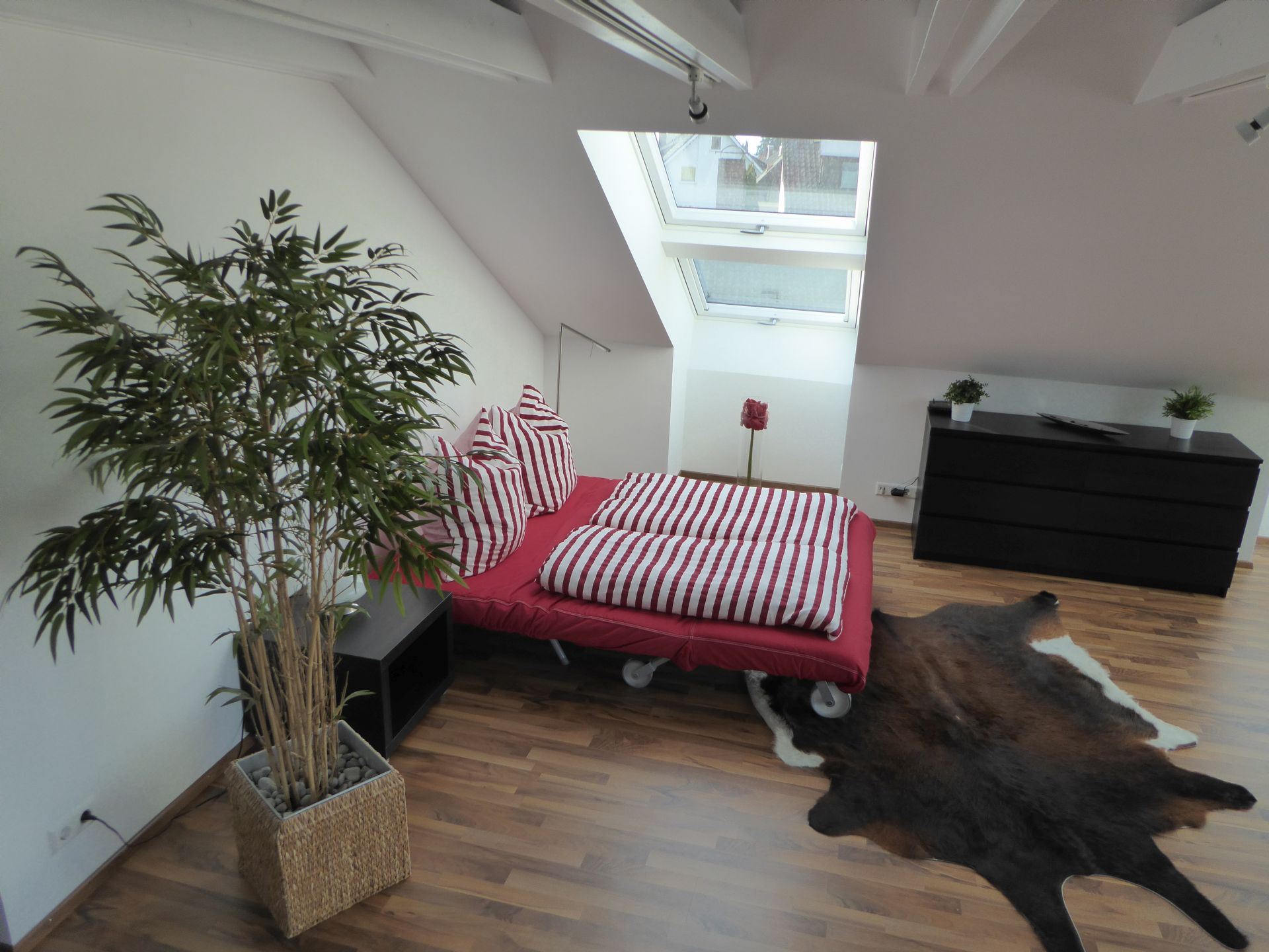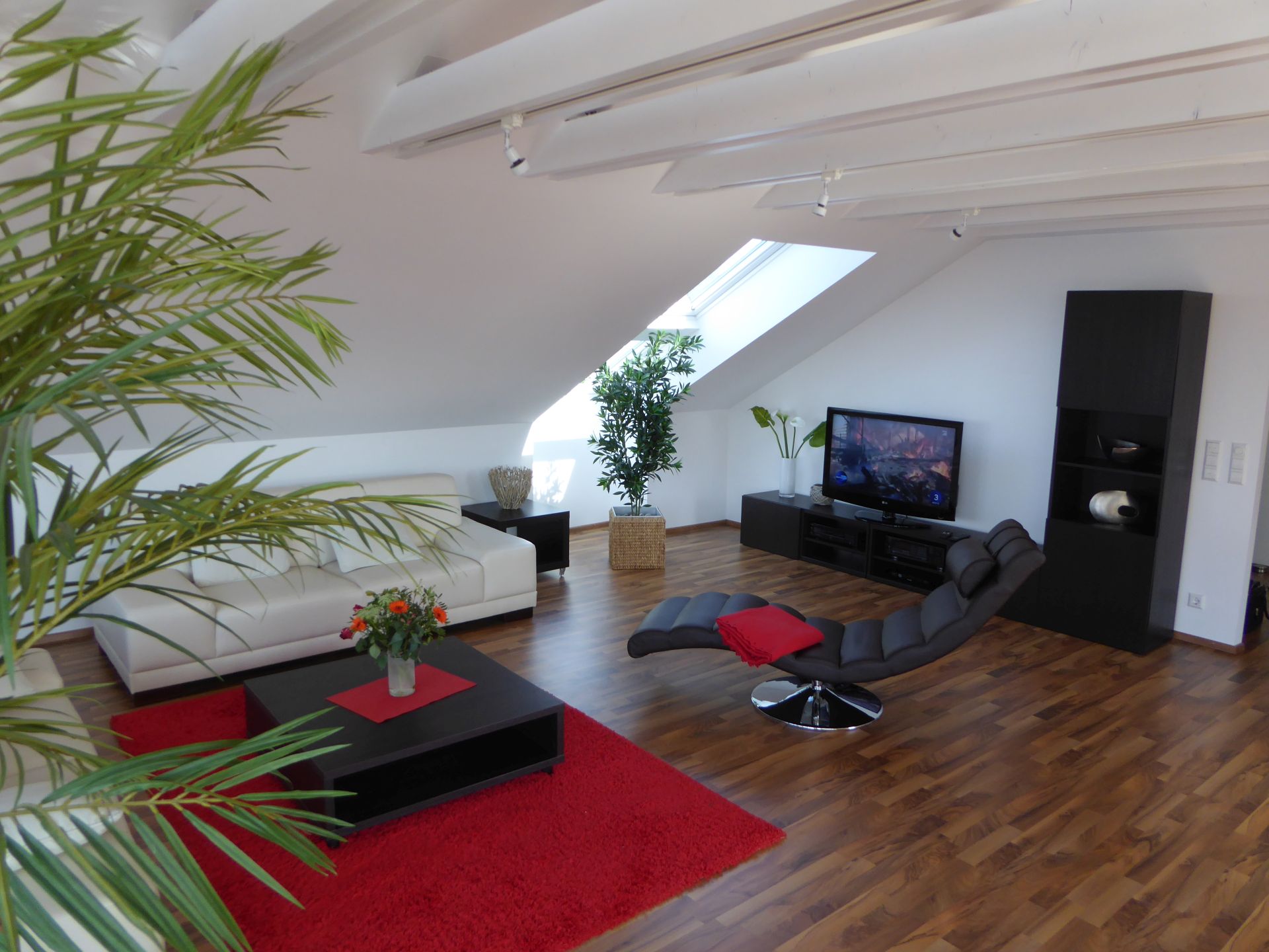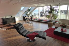 Die Ferienwohnung ist ca.110qm groß und bietet Platz für bis zu vier Personen. Sie liegt in der zweiten Etage eines 5-Familienhauses und nimmt das komplette Dachgeschoss ein. Die Wohnung zeichnet sich besonders durch einen traumhaften Blick auf den Bodensee bis hin zu den Schweizer Alpen vom komplett zum See verglasten Wohnzimmer und der ca. 30qm großen Dachterrasse aus. Das großzügige und lichtdurchflutete Wohnzimmer hat ca. 50qm und ist modern eingerichtet. Sie finden dort eine gemütliche Couchgarnitur, Esstisch mit vier Stühlen am Fenster, eine Doppelschlafcouch (160x200) und einen Relax- und Fernsehsessel. Ein 46Zoll Flachbildfernseher gehört ebenso zur Ausstattung wie eine Stereoanlage mit CD Player. Das Schlafzimmer ist ausgestattet mit einem Doppelbett (180x200), einem großzügigen Einbauschrank und einem Kosmetiktisch mit großem Spiegel. Im hellen Wohlfühlbad mit Eckbadewanne, separater Vollglas-Duschkabine, Waschtisch und WC fühlen Sie sich mit Sicherheit Wohl! In der separaten Küche finden Sie neben einem Backofen und einem Ceran Kochfeld den Kühlschrank mit Gefrierfach, eine Geschirrspülmaschine, eine Mikrowelle, eine Kaffeemaschine, einen Toaster und einen Wasserkocher. Im Flur befindet sich eine großzügige Garderobe.